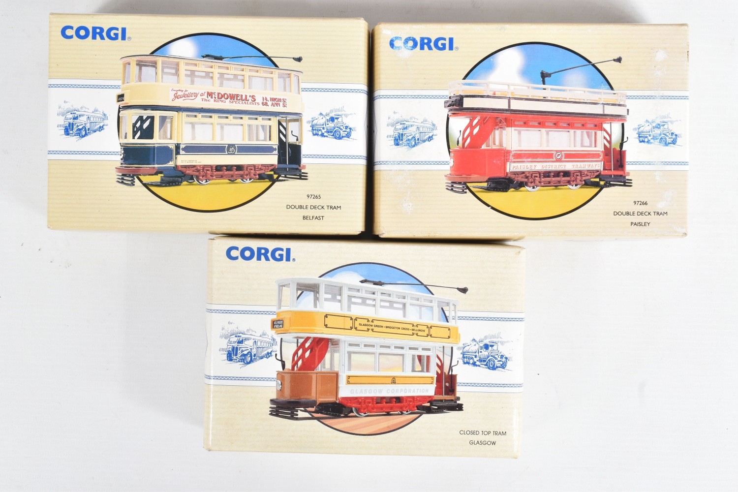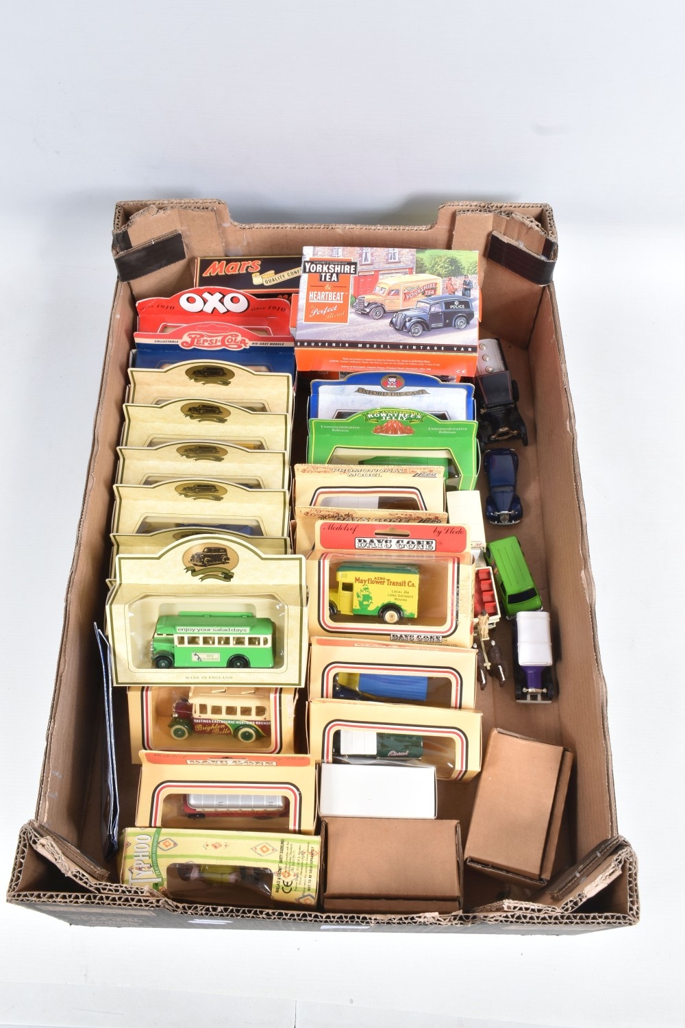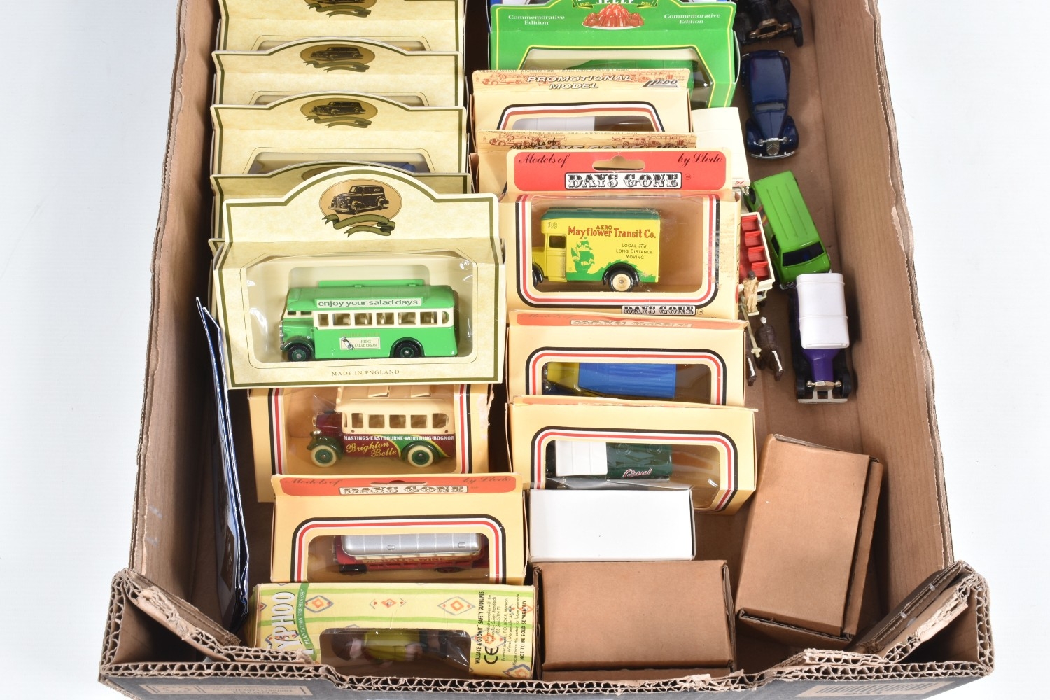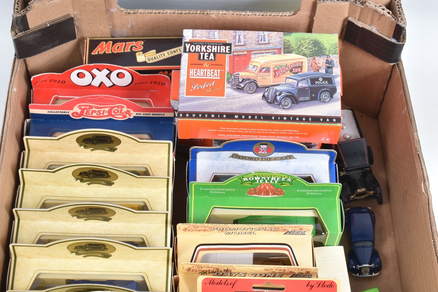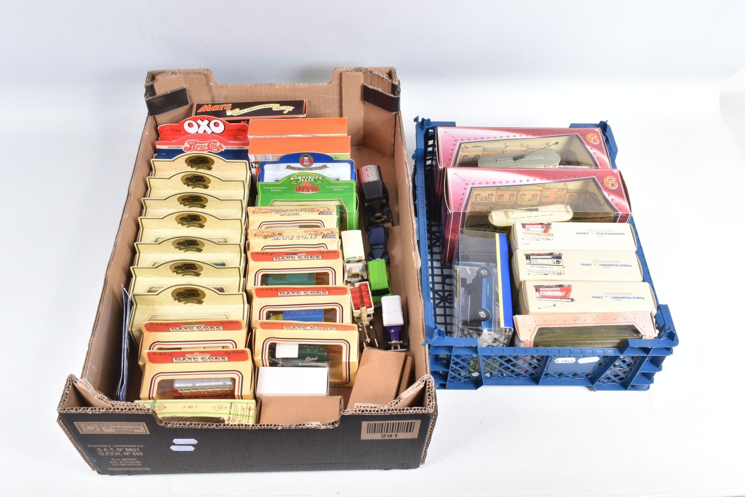 A COLLECTION OF MAINLY BOXED MODERN DIECAST VEHICLES, to include assorted Corgi Classics Tram models, Lledo Days Gone and Oxford Diecast, all appear complete and in very good condition, many look to have hardly, if ever, been removed from boxes and with limited edition certificates as appropriate, majority of boxes in good condition with only minor damage, marking and wear, small quantity of unboxed Corgi Classics, Lledo and other models (2 boxes)