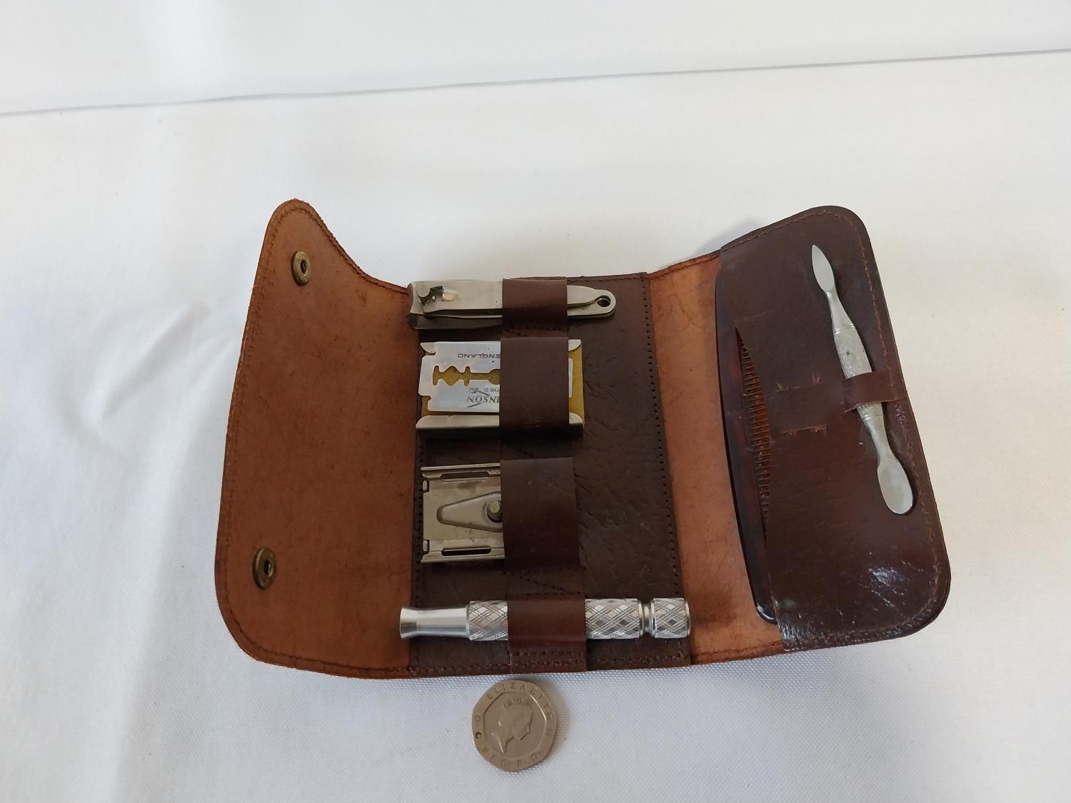 grooming set in leather case