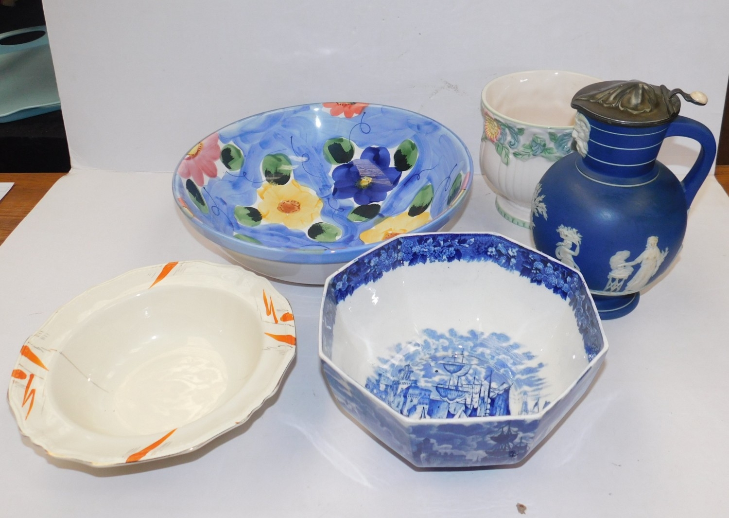 Selection of ceramic bowls and large Wedgwood Doric jug