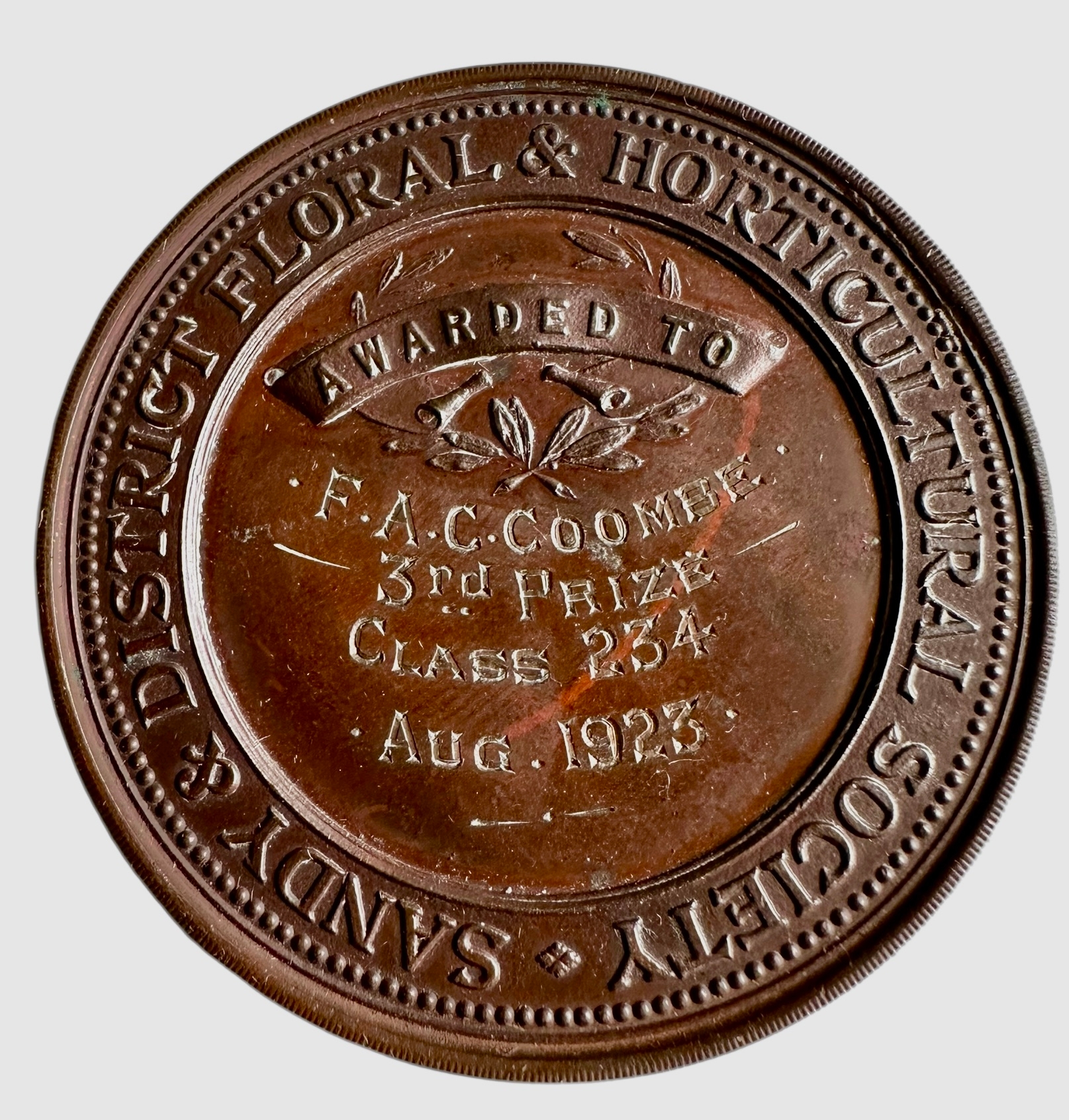 Sandye Place Floral & Horticultural Society Medallion Aug 1923 Size 5cm