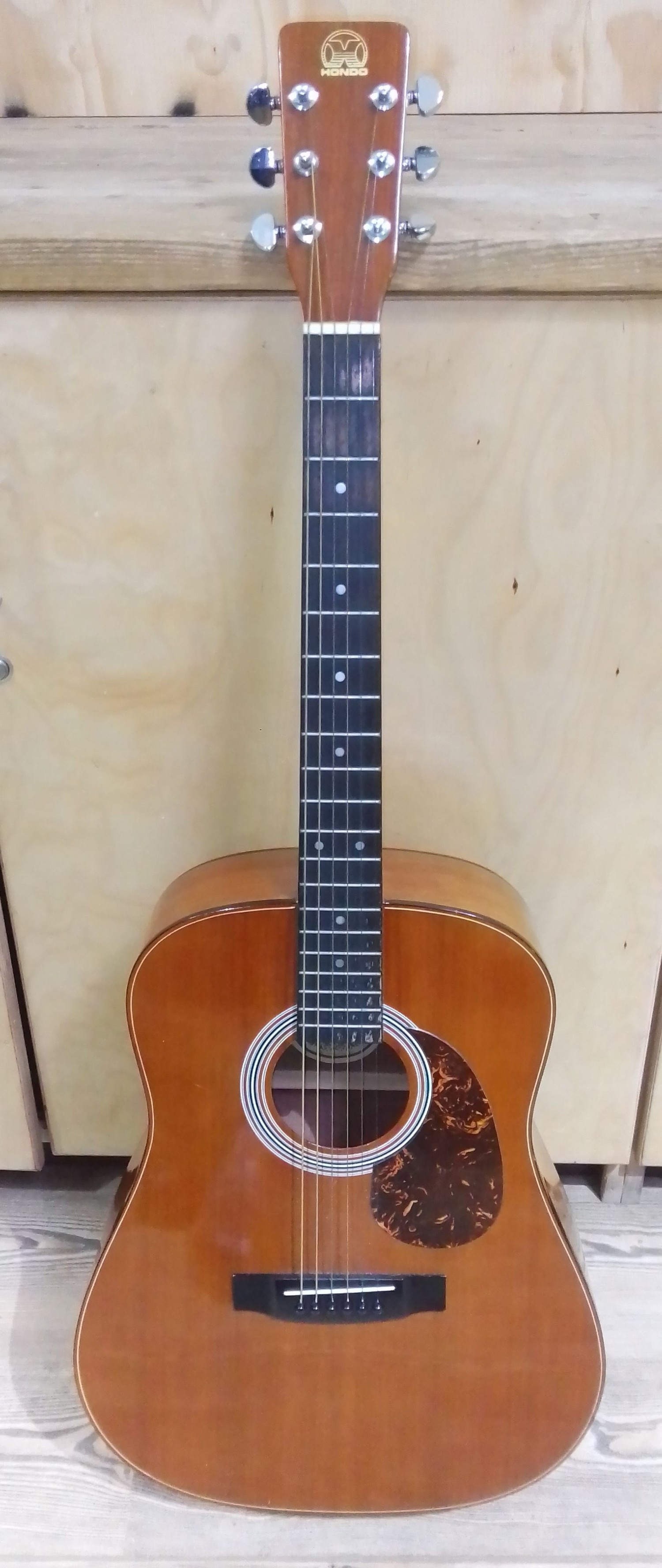 A Hondo steel strung acoustic guitar with soft bag.