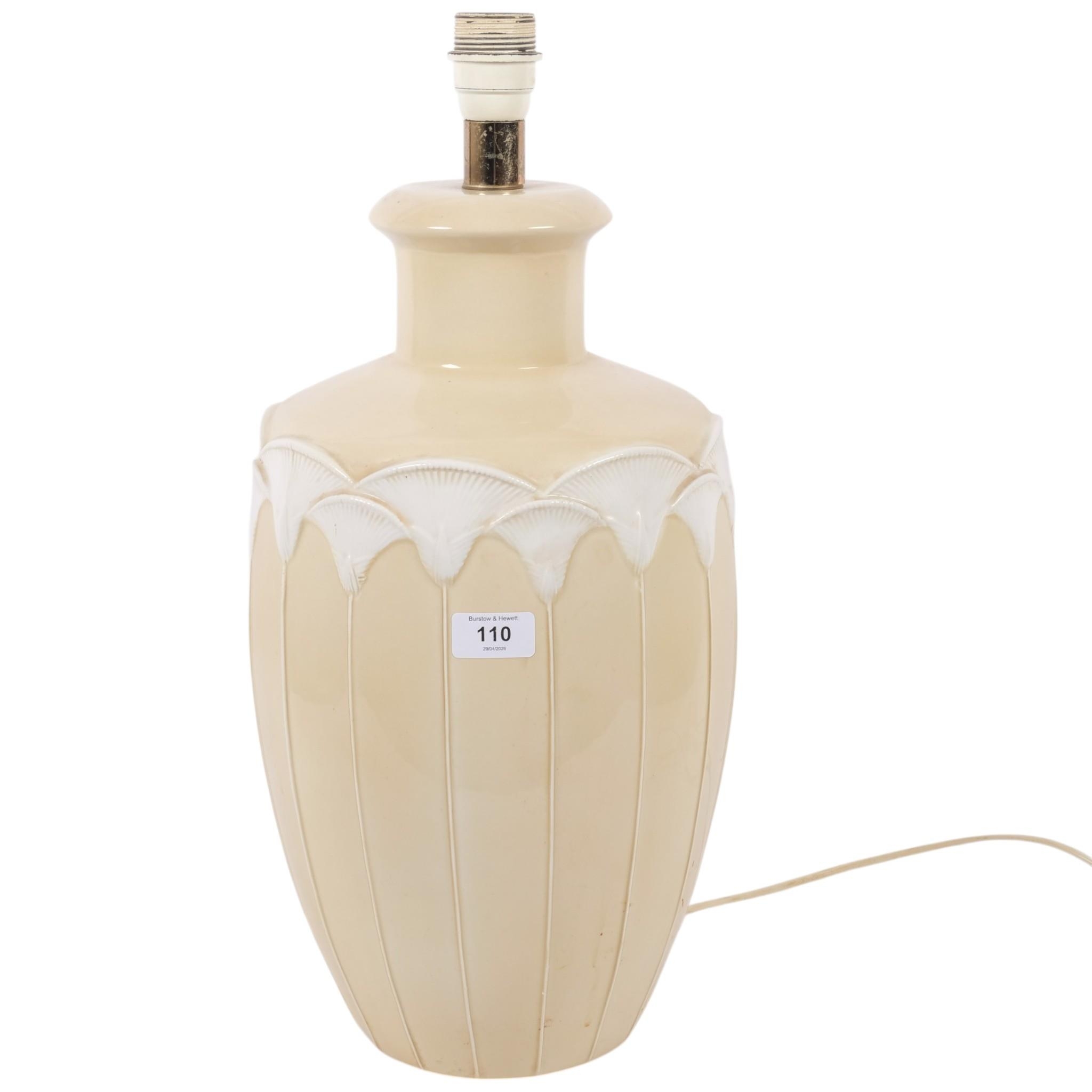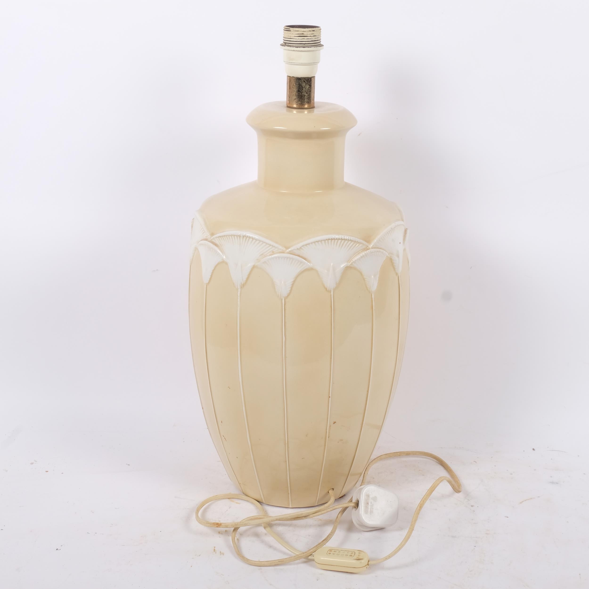 A large ceramic papyrus design table lamp, overall H53cm