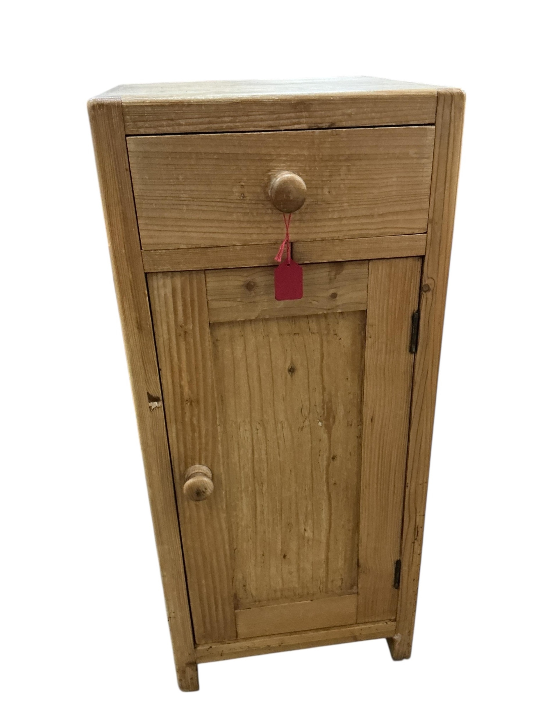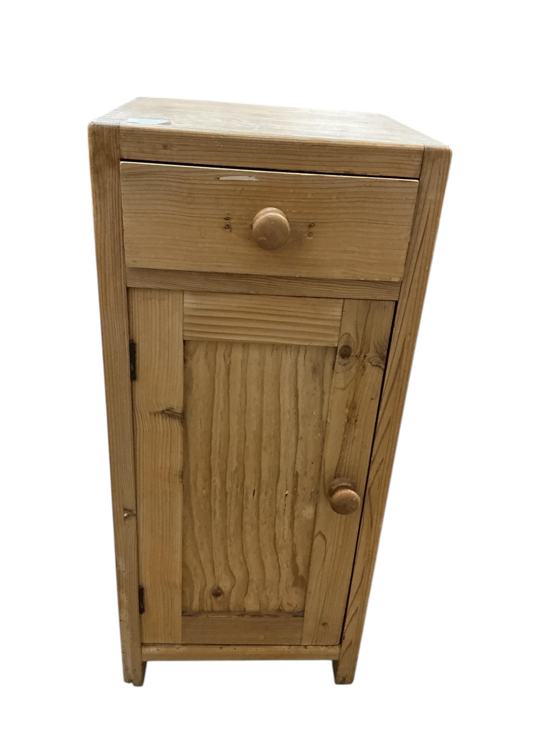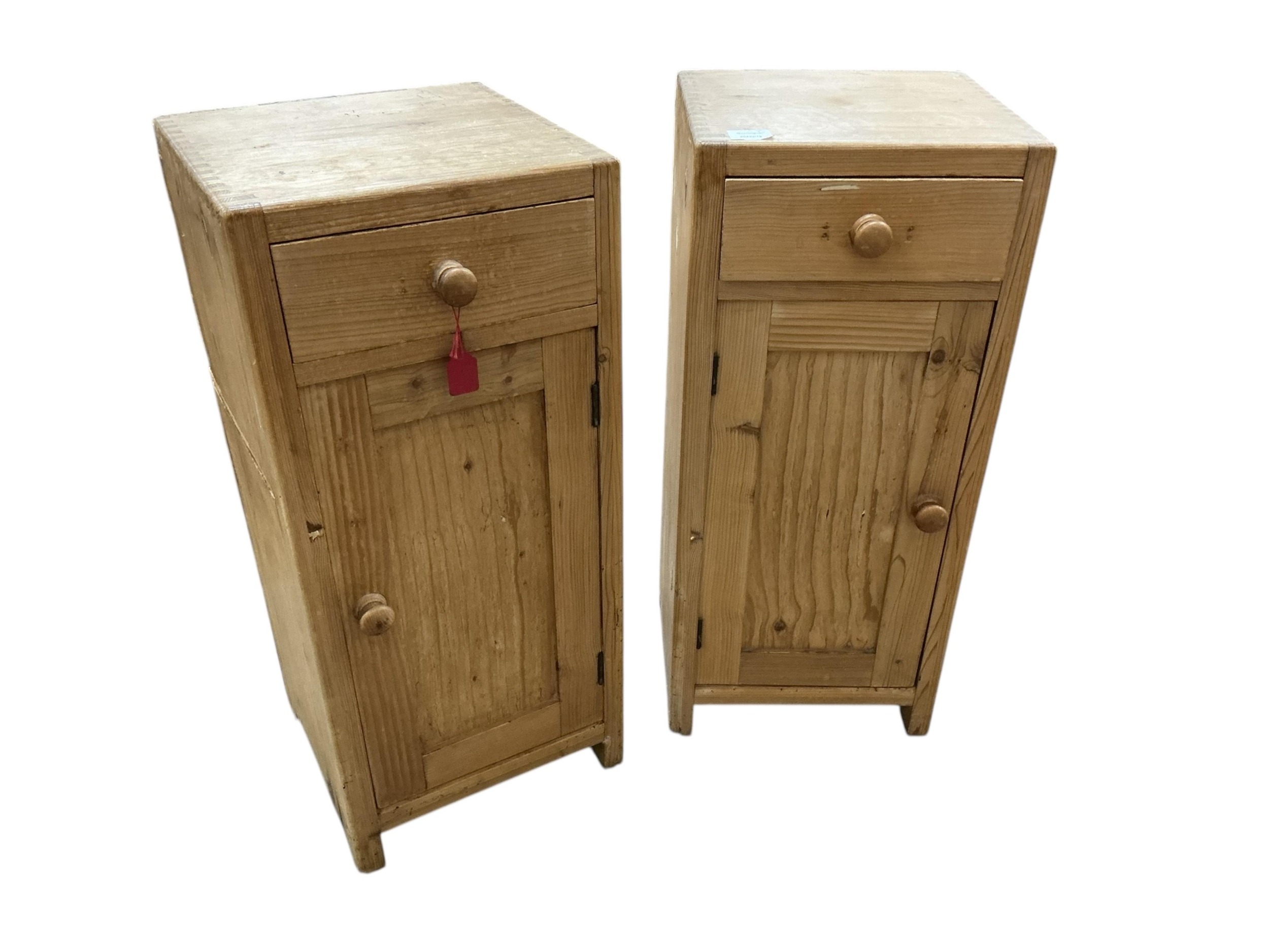 A pair of pine bedside cupboards, width 34cm, depth 32cm, height 76cm