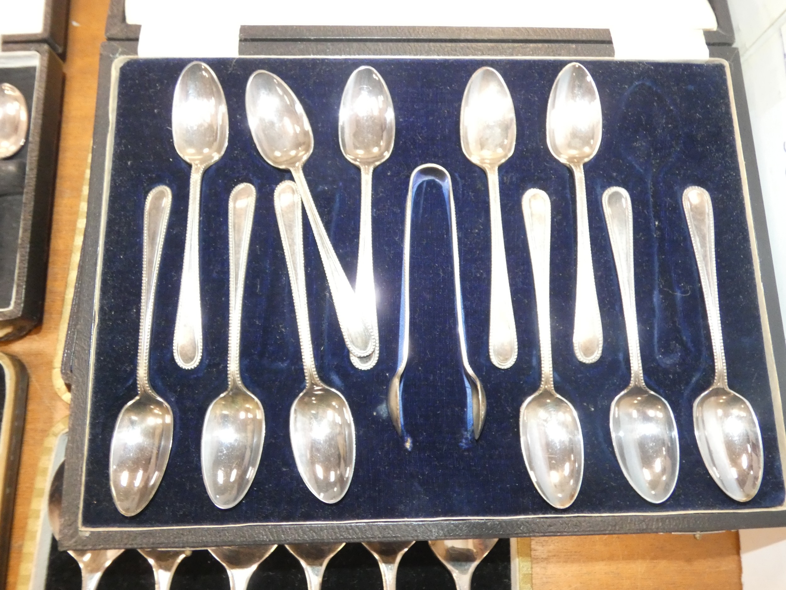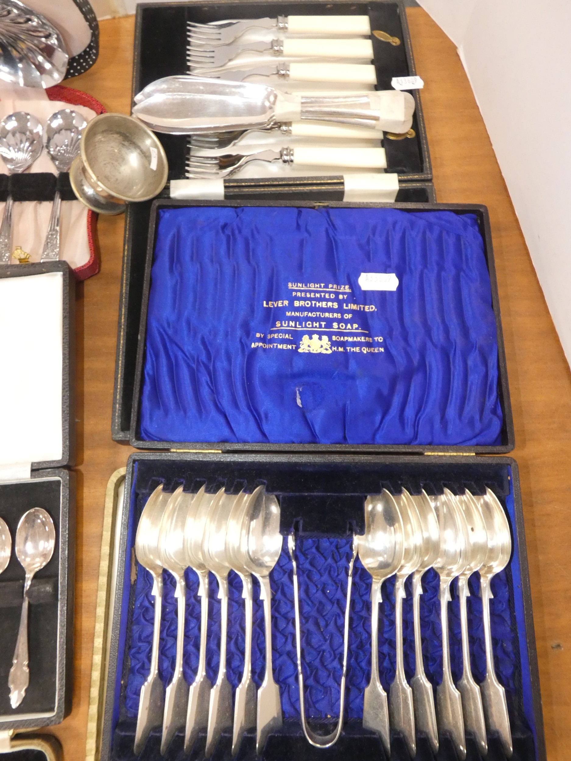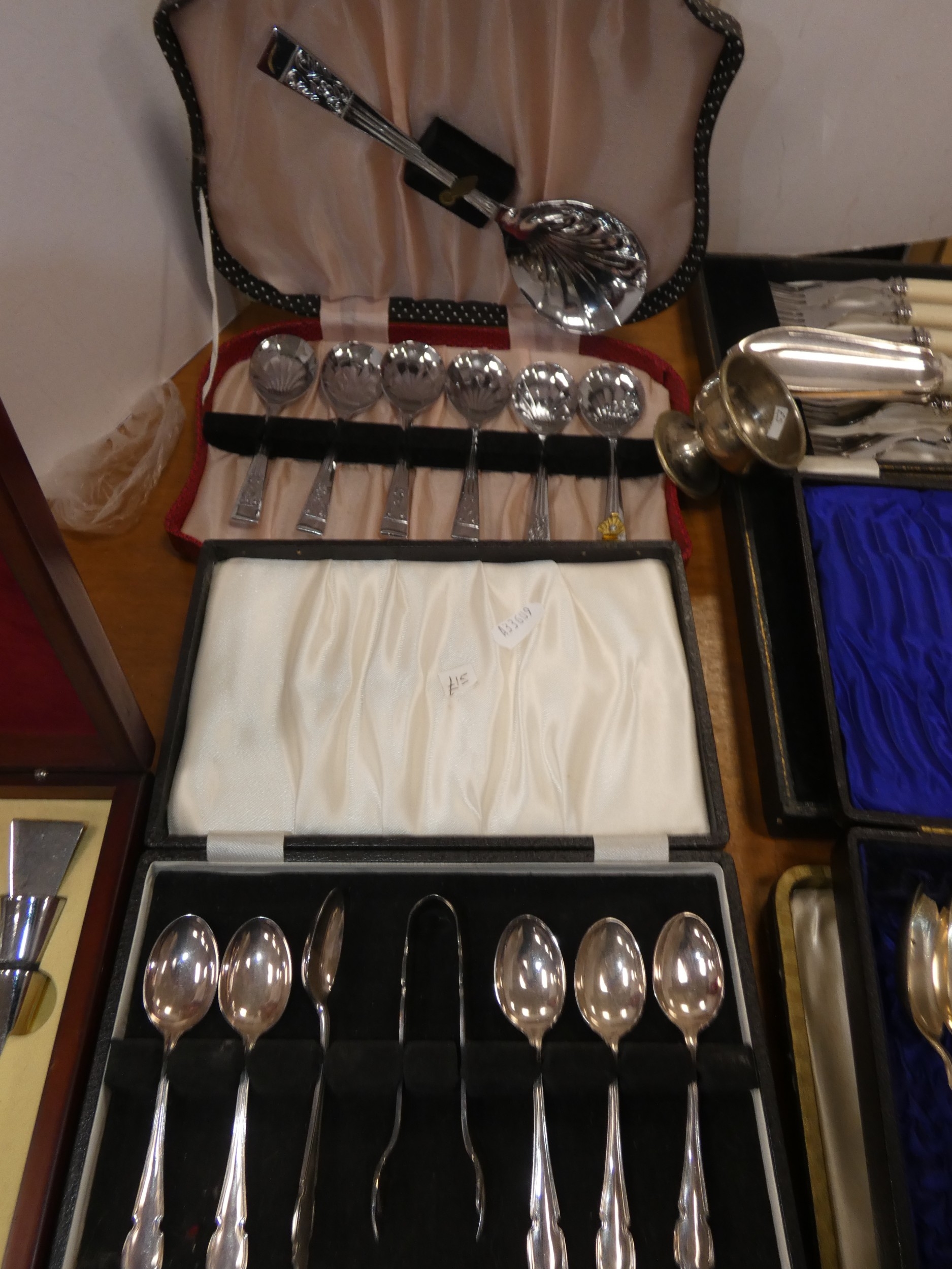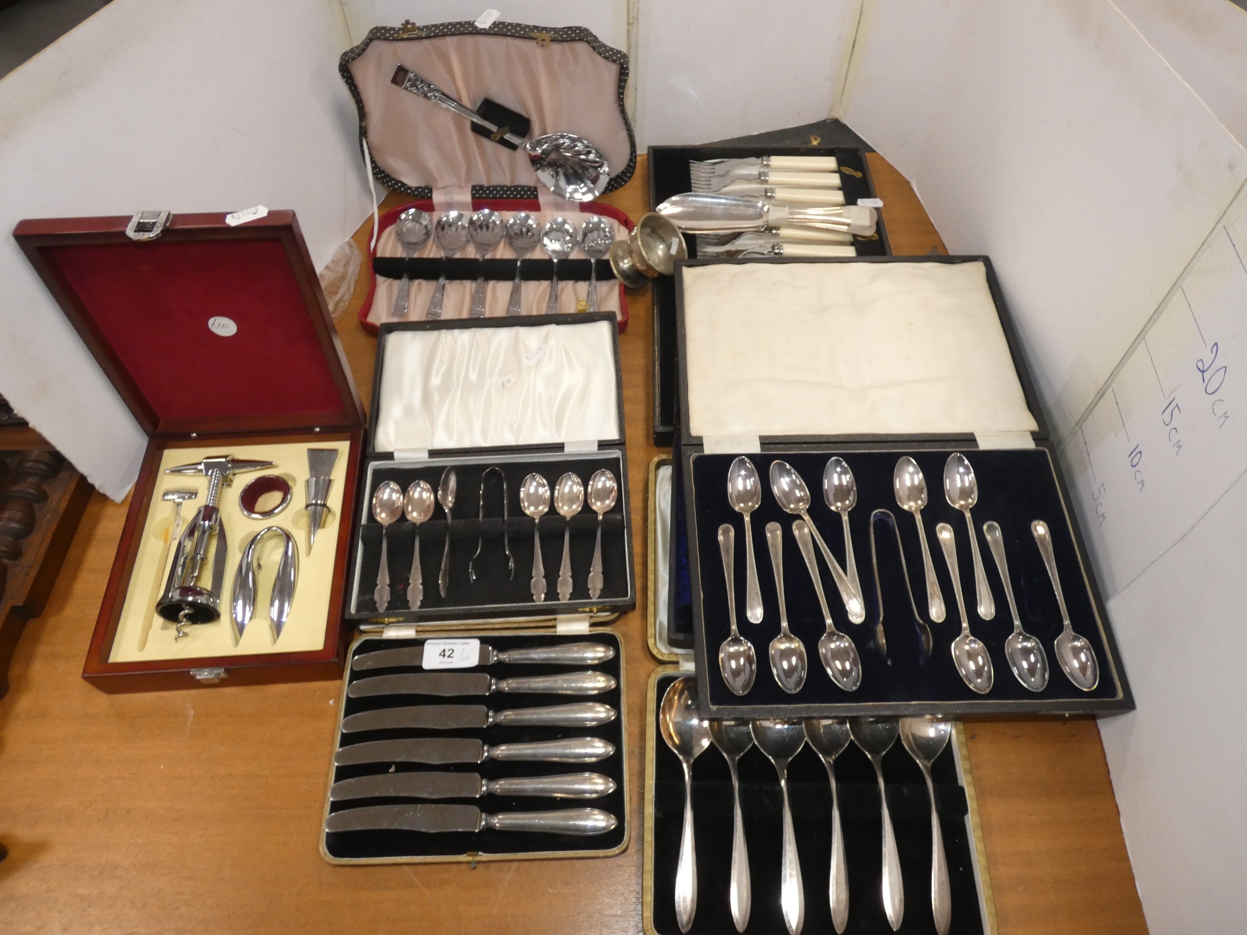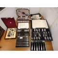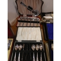 Large collection of EP cutlery to include fish knives and forks, teaspoons, set of six silver-handled butter knives, Community Plate, cased wine set etc.
