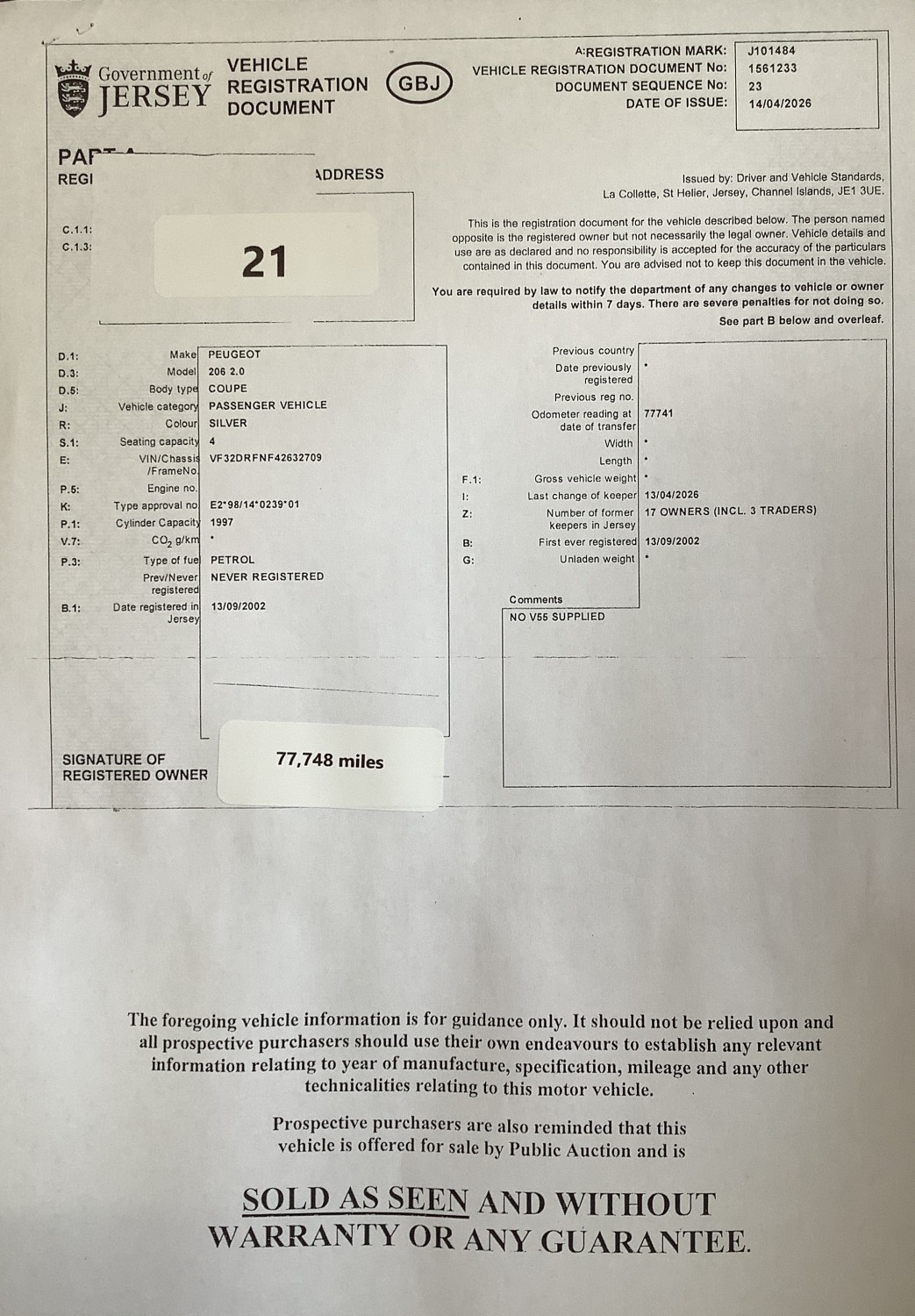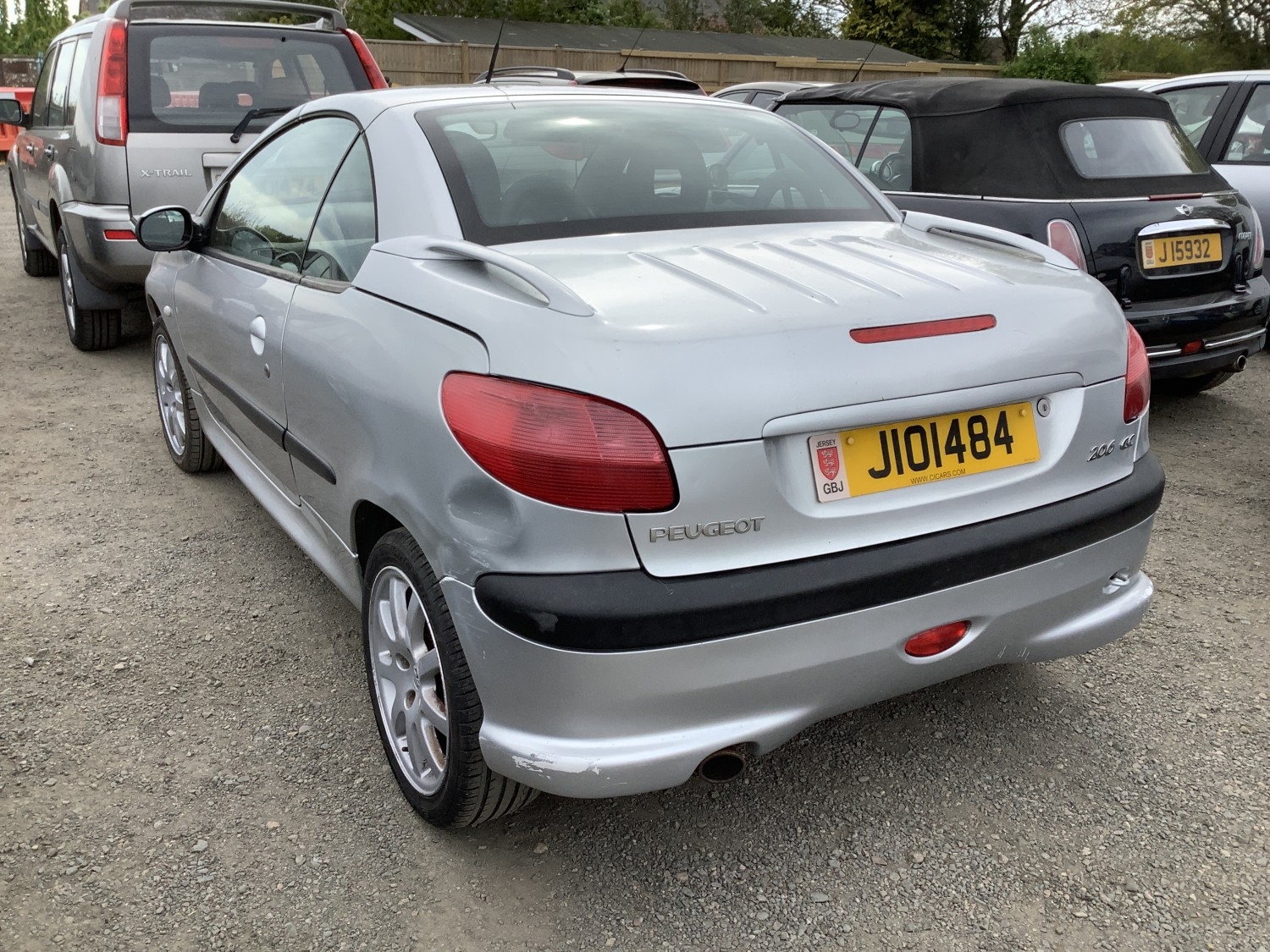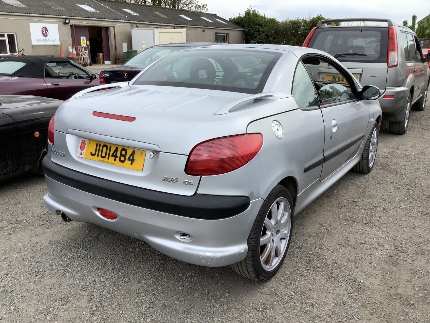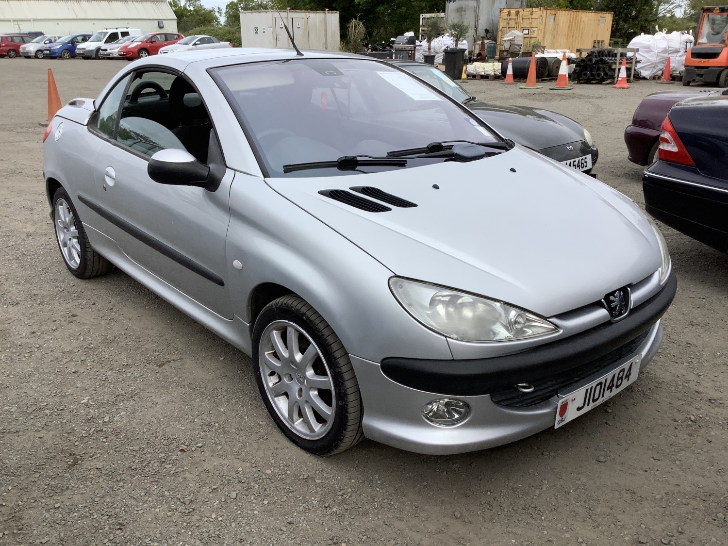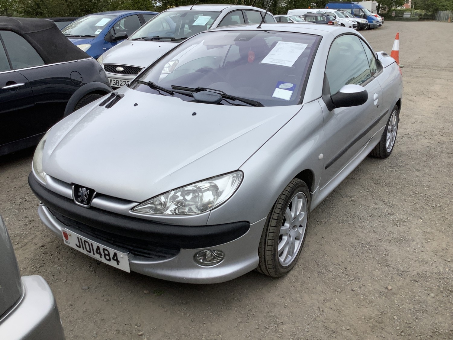 A 2002 Peugeot 206 2.0 coupe convertible J101484 (petrol/manual), odometer reading 77,748 miles