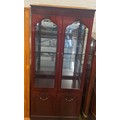 A Modern mahogany veneered glazed display cabinet. With interior lights. 187cm x 80cm x 42cm