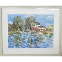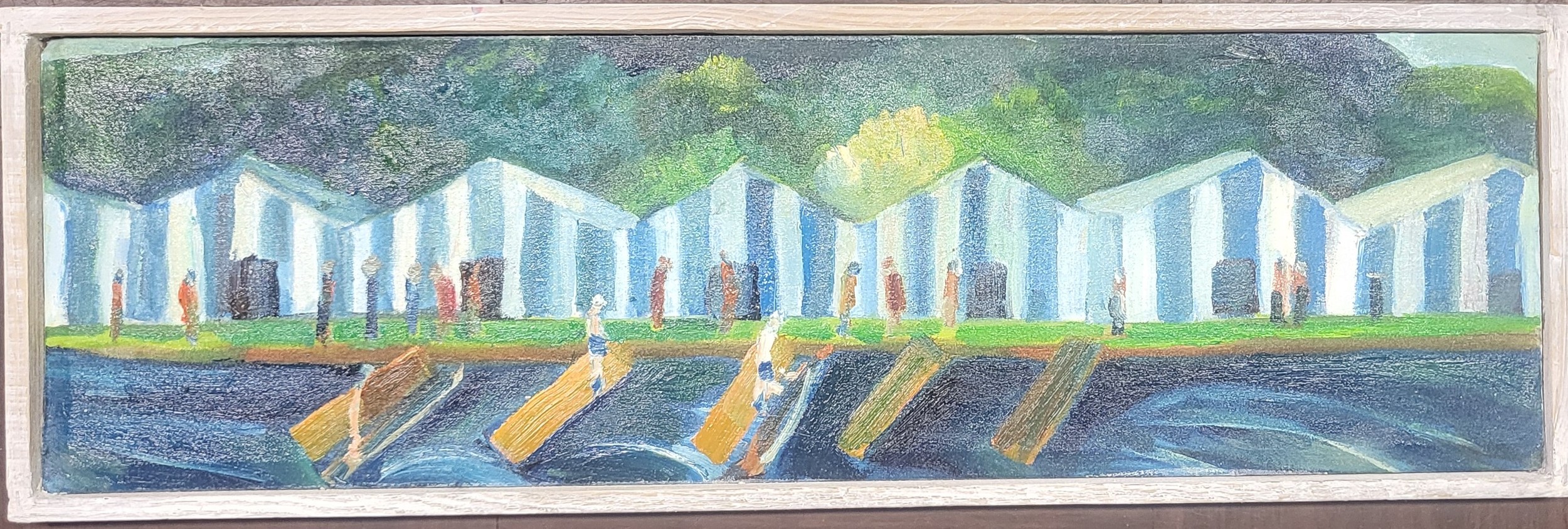 'Henley Regatta, Thames' oil on canvas by Richard Conway-Jones. Signed and framed. 22.5 x 79cm including frame.