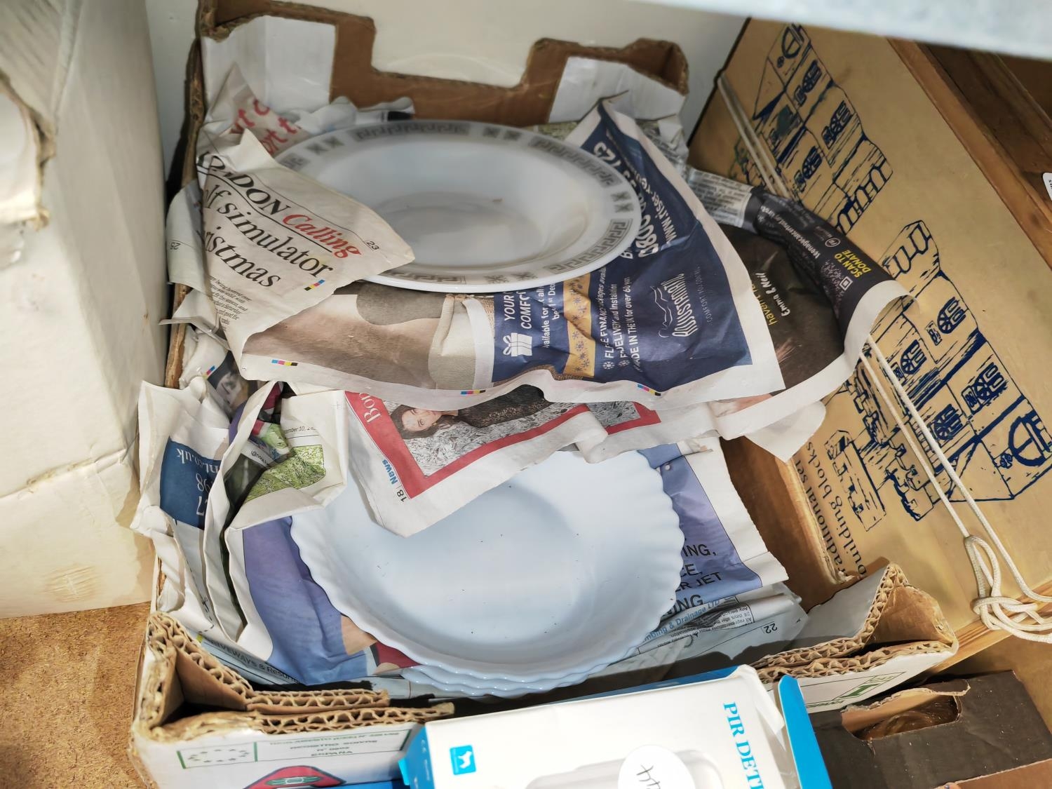 New Homebase 12 Pce White Dining Set On Original Box + 14 Other Plates + New Set 6 Cups And Saucers