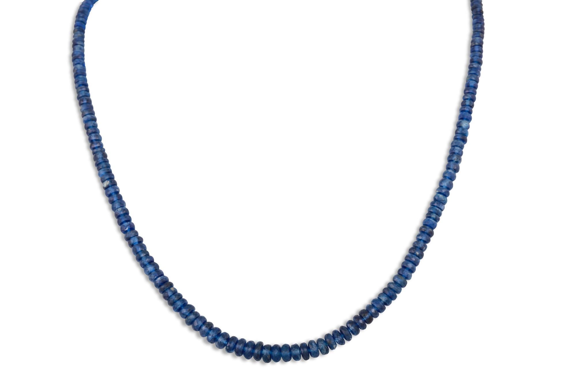 A FACETED SAPPHIRE BEAD NECKLACE, graduated, silver clasp