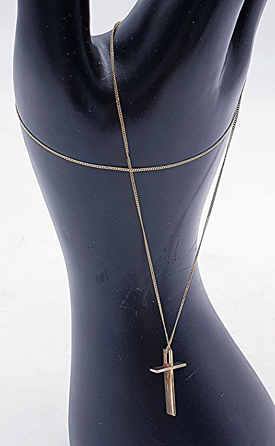 PRESENTED AS A 9ct GOLD (Hallmarked) CROSS PENDANT ON A 40 cm GOLD (375)NECK CHAIN (Total Weight 1.8 Grams)