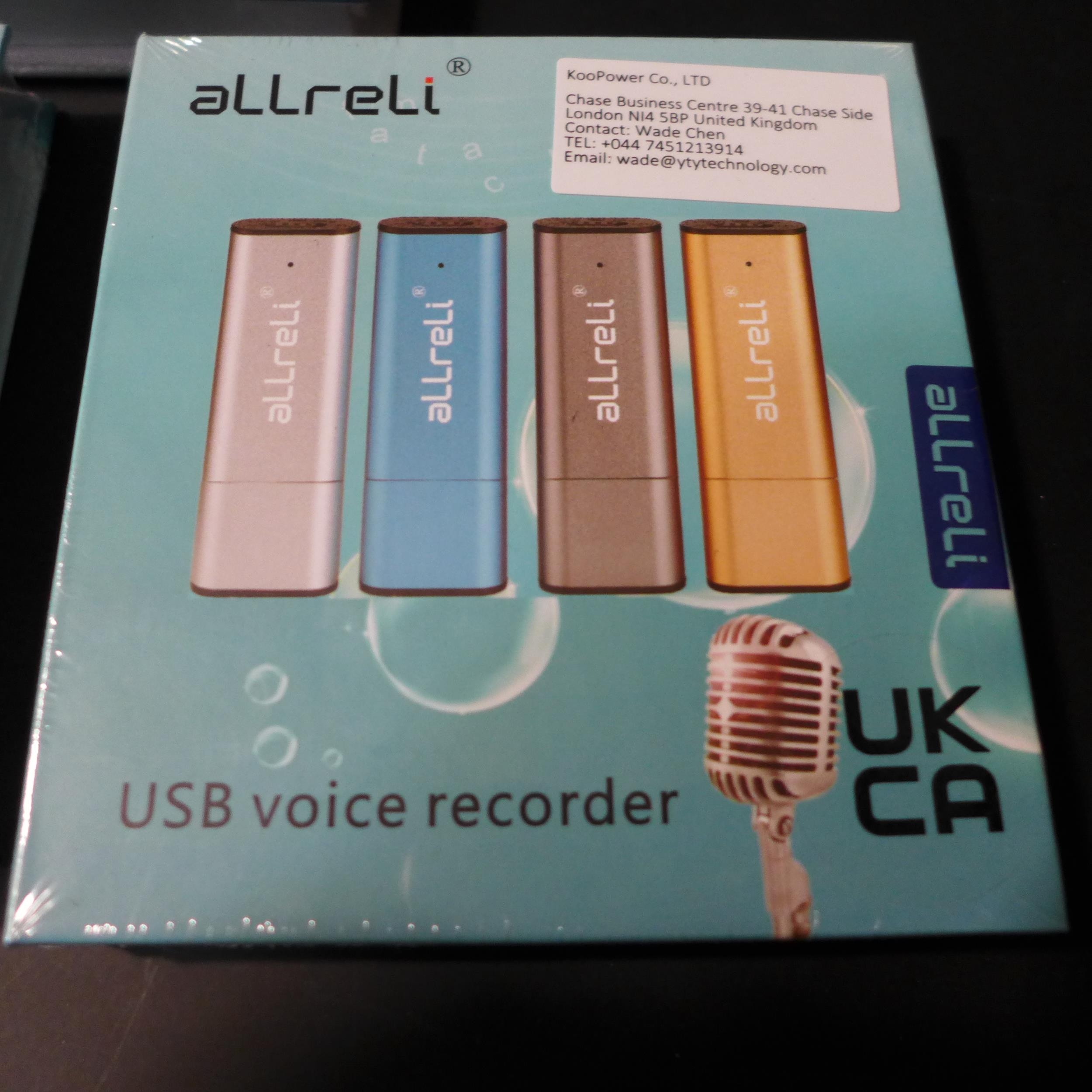 Three Allreli USB voice recorders (2 x 8GB, 1 x 16GB)