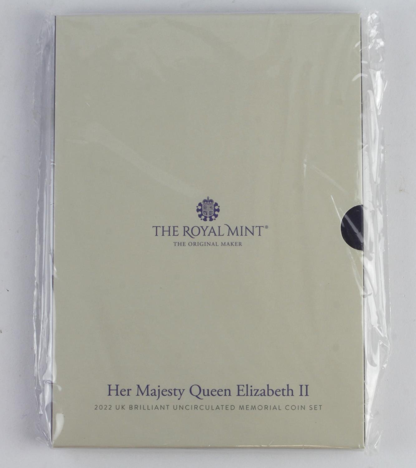 Royal Mint: Her Majesty Queen Elizabeth II 2022 UK Brilliant Uncirculated Memorial Coin Set (10 coins) QEII definitives and Charles III Crown and 50p, BU in packaging.