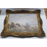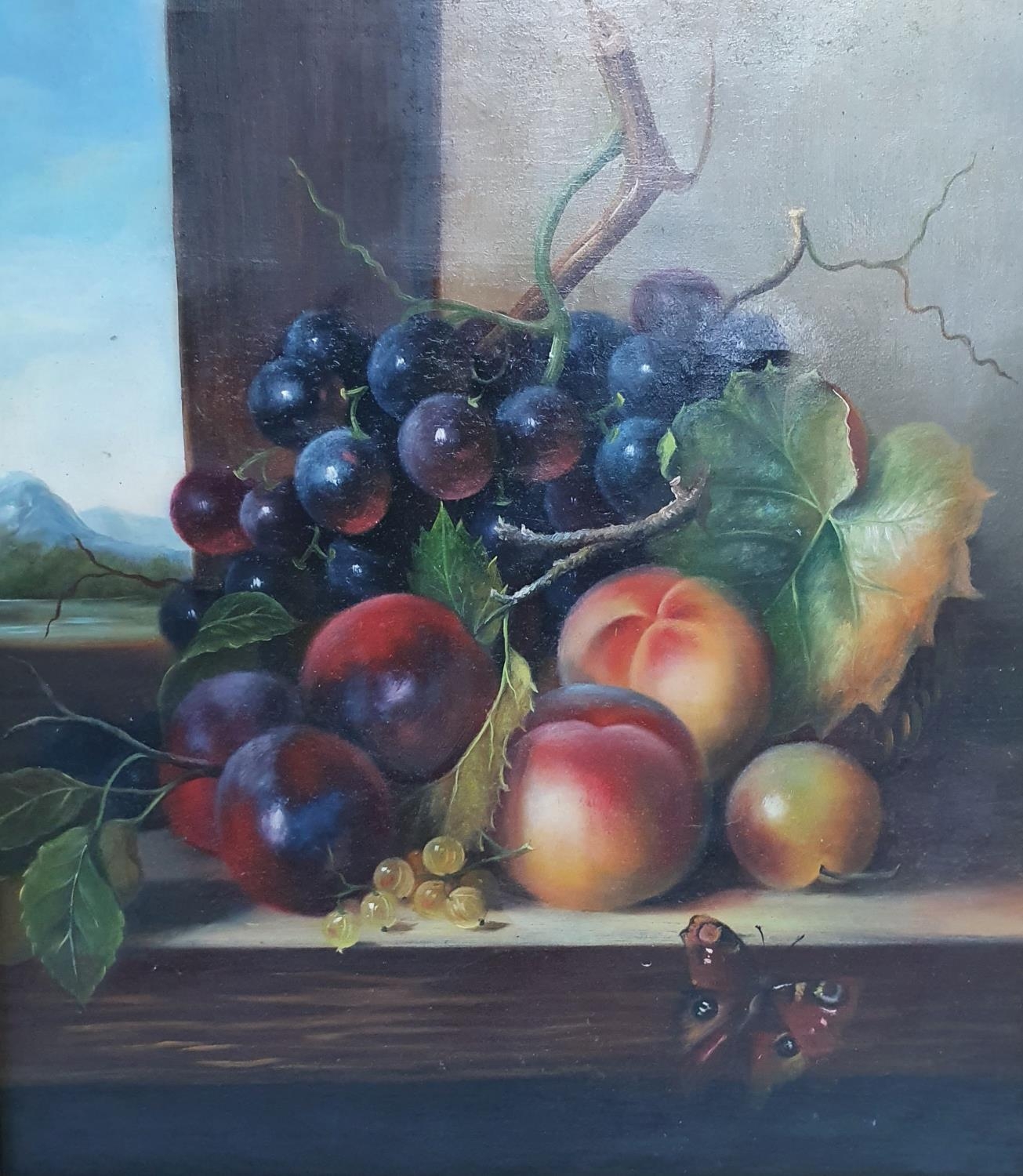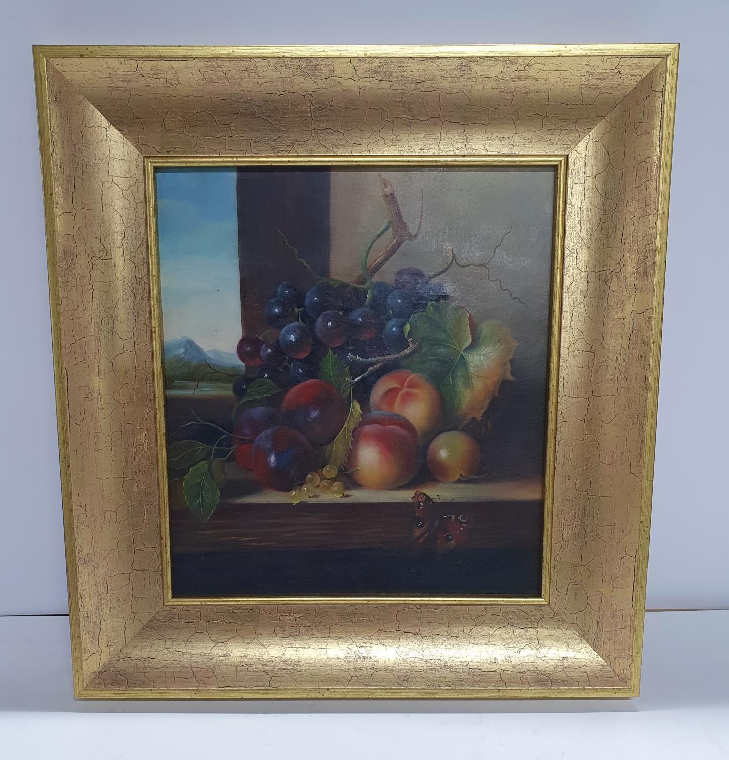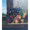 Fine quality unsigned modern oil on canvas depicting fruit in wide gilt coloured frame,