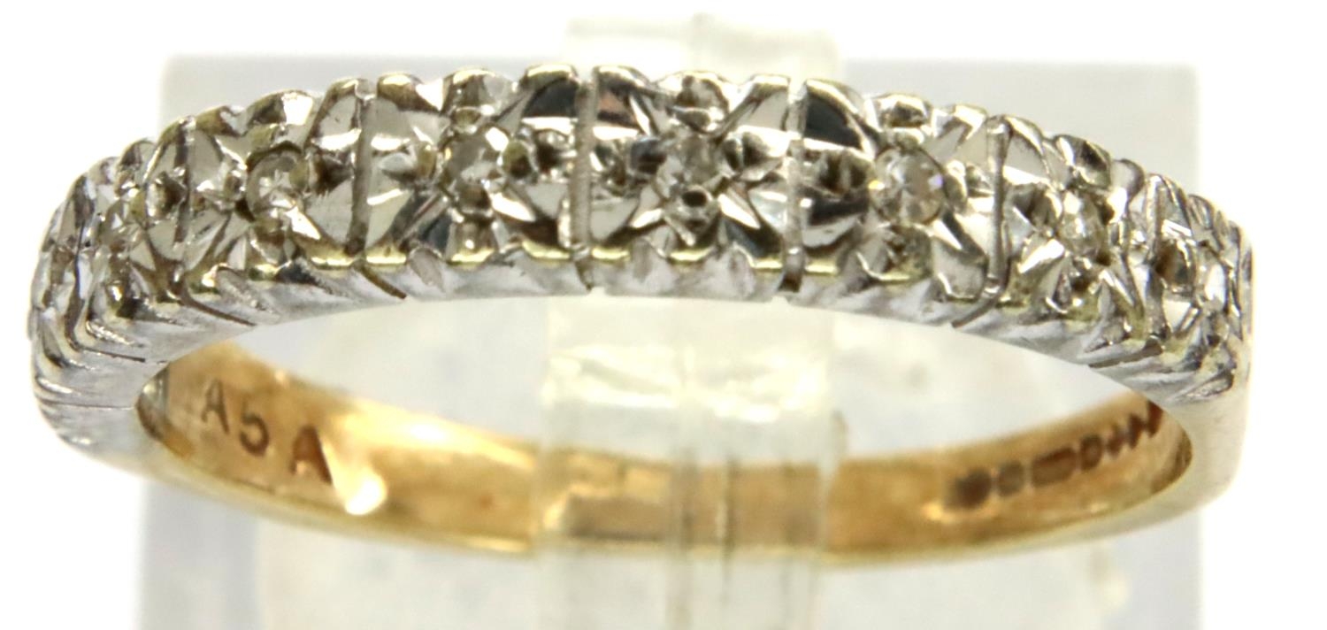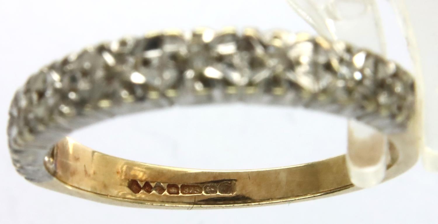 9ct gold diamond set half eternity ring, size M/N, 2.2g. P&P Group 1 (£14+VAT for the first lot and £1+VAT for subsequent lots)