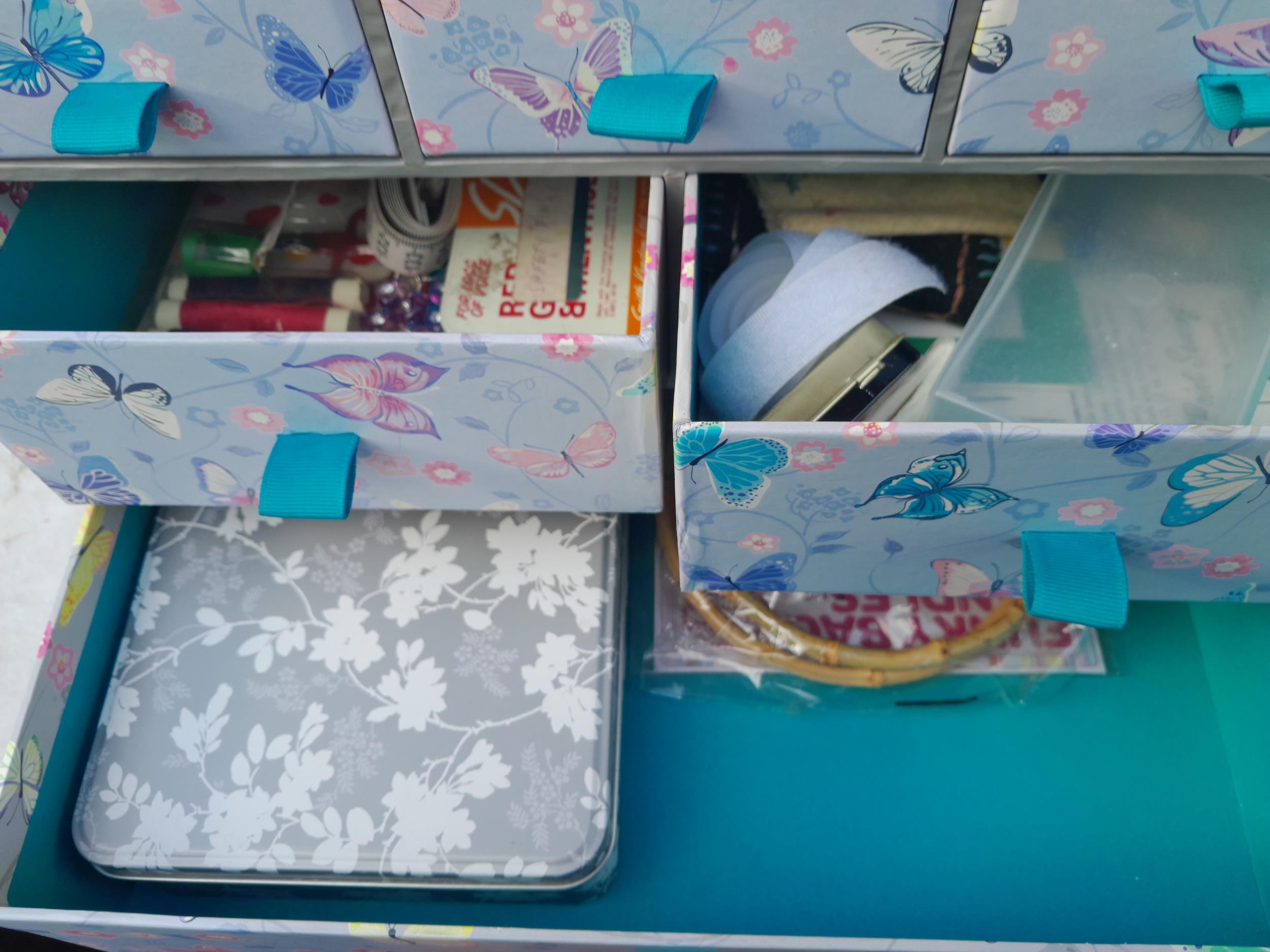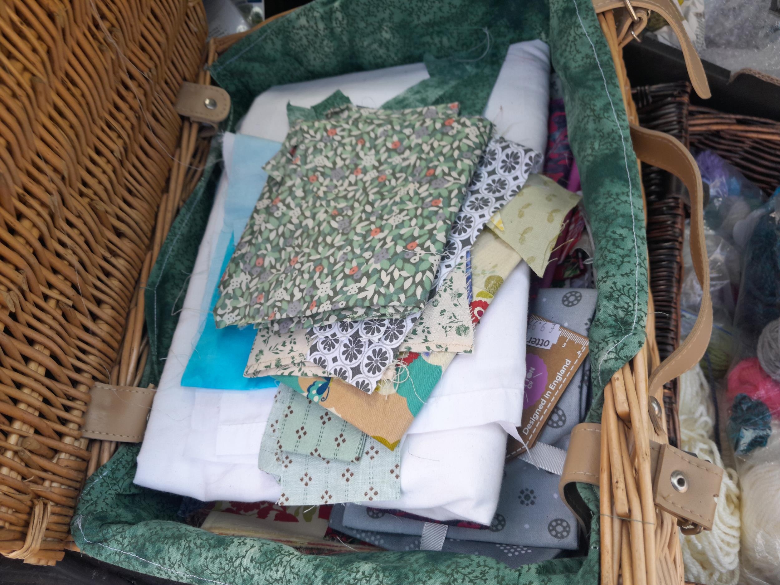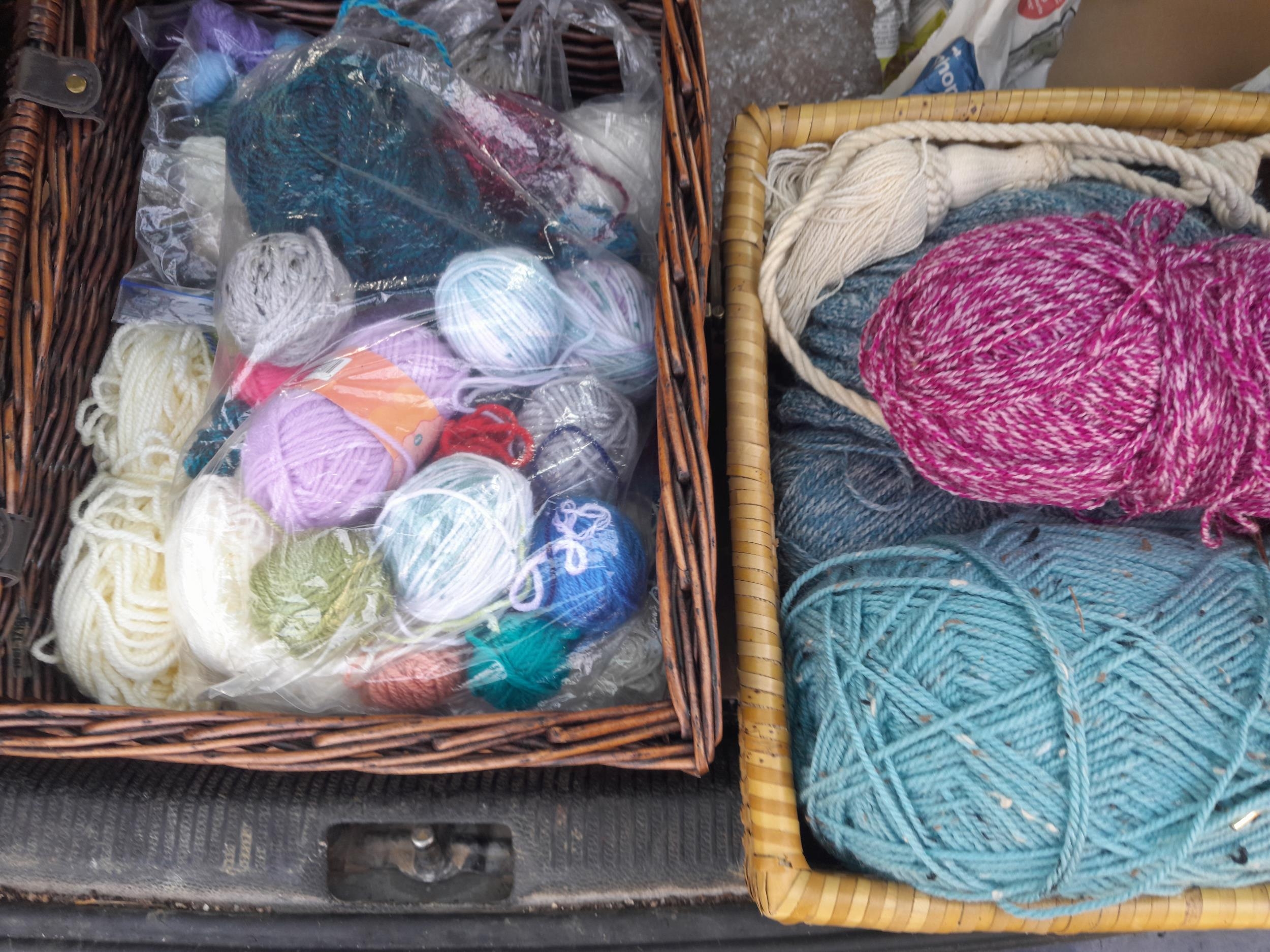 Sewing related items and new old stock wool and Brabantia bread bin in box of issue