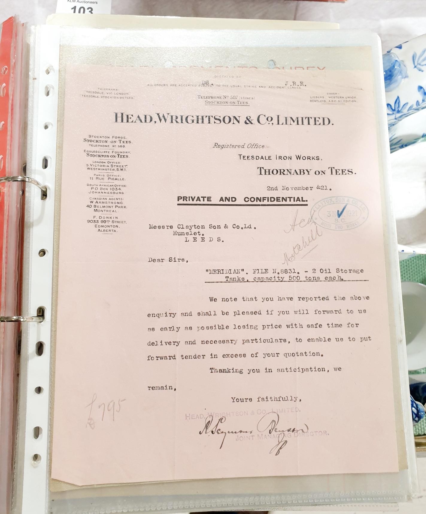 A folder of Victorian and later mill orders, letters and invoices. UK shipping £14.