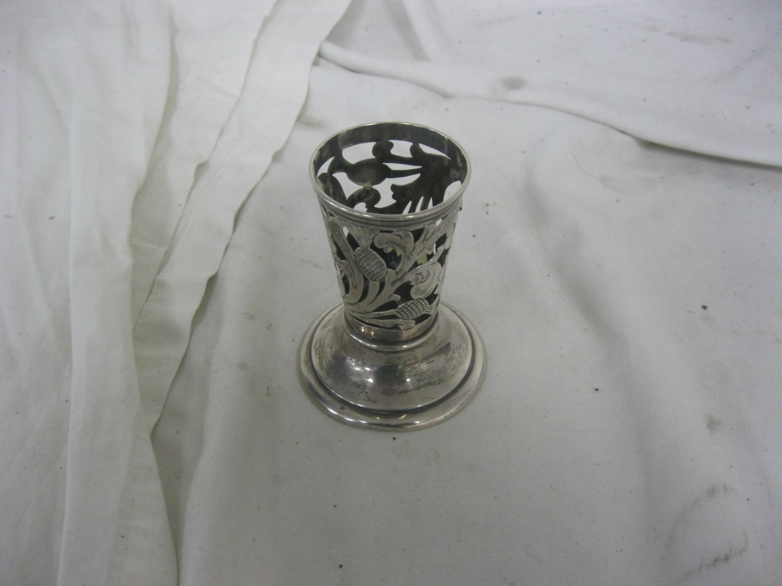 An American made art nouveau bud vase holder by Theodore & Starr of New York, marked for sterling silver, slight a/f but still a very decorative item, approx weight 46g
