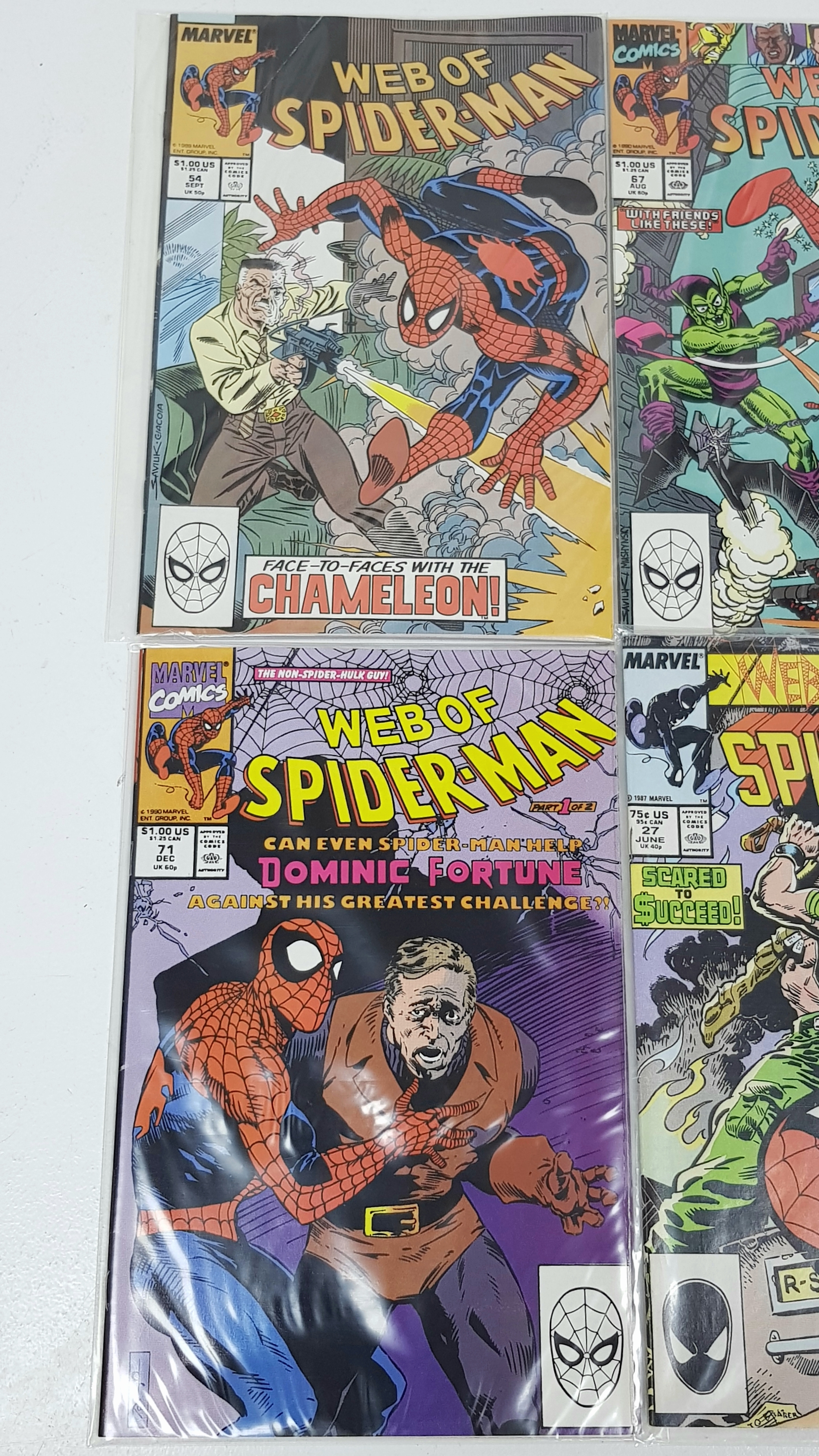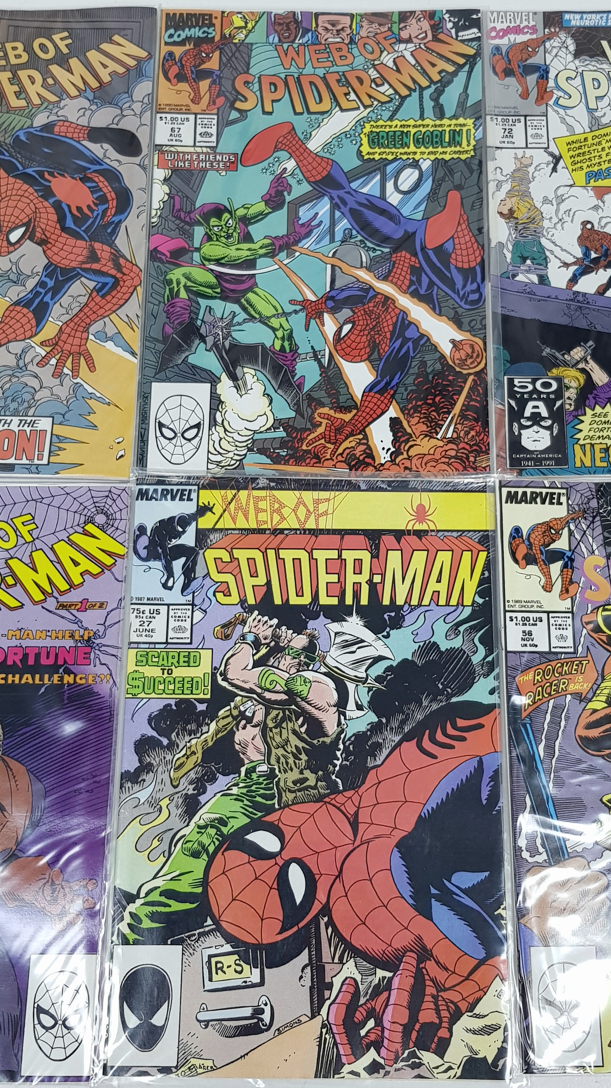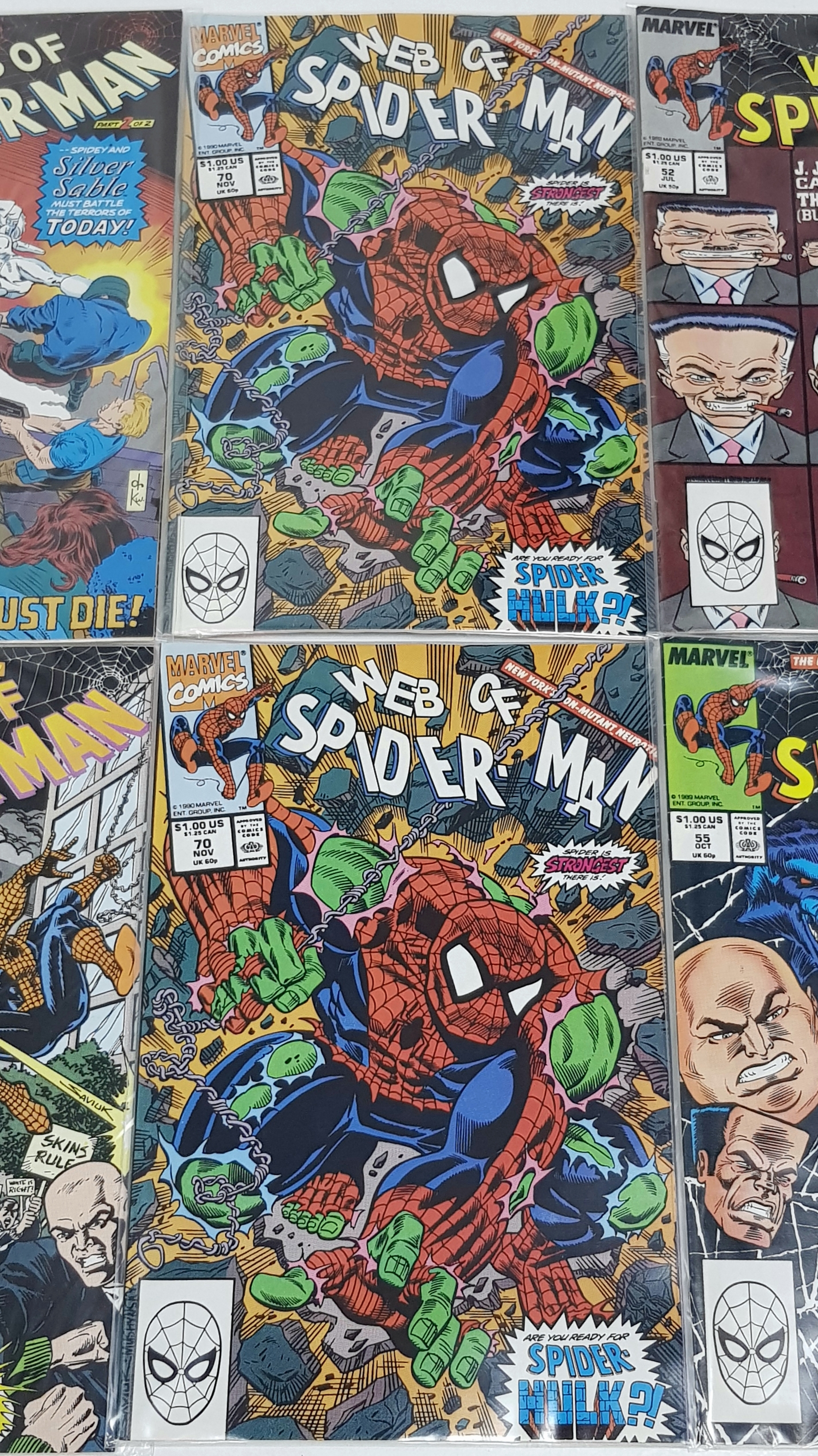 Ten Marvel Spiderman Comics - Most Being in Very Fine to Very Fine Plus Grade. All individually wrapped in plastic. Please refer to photos for finer details.
