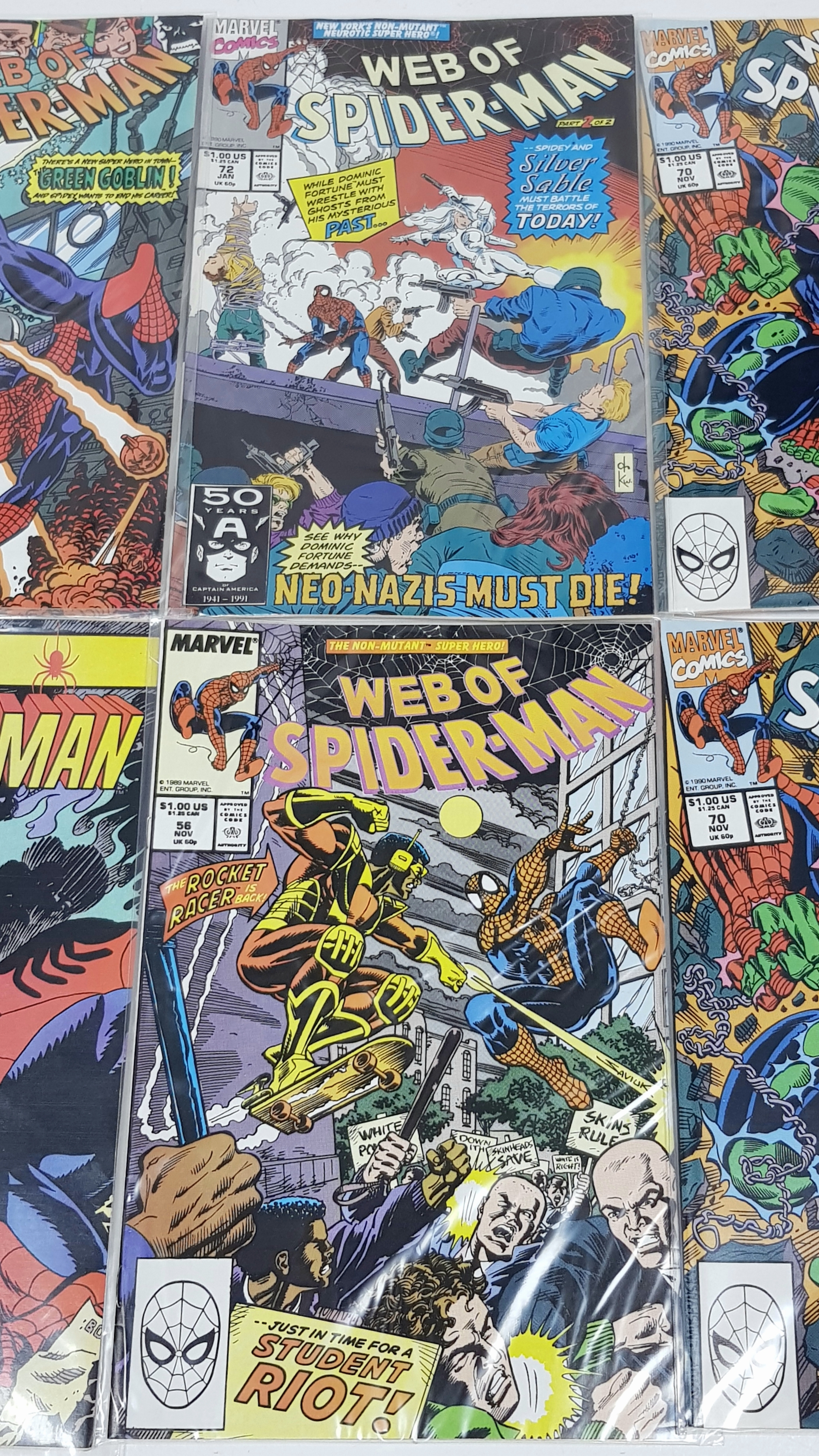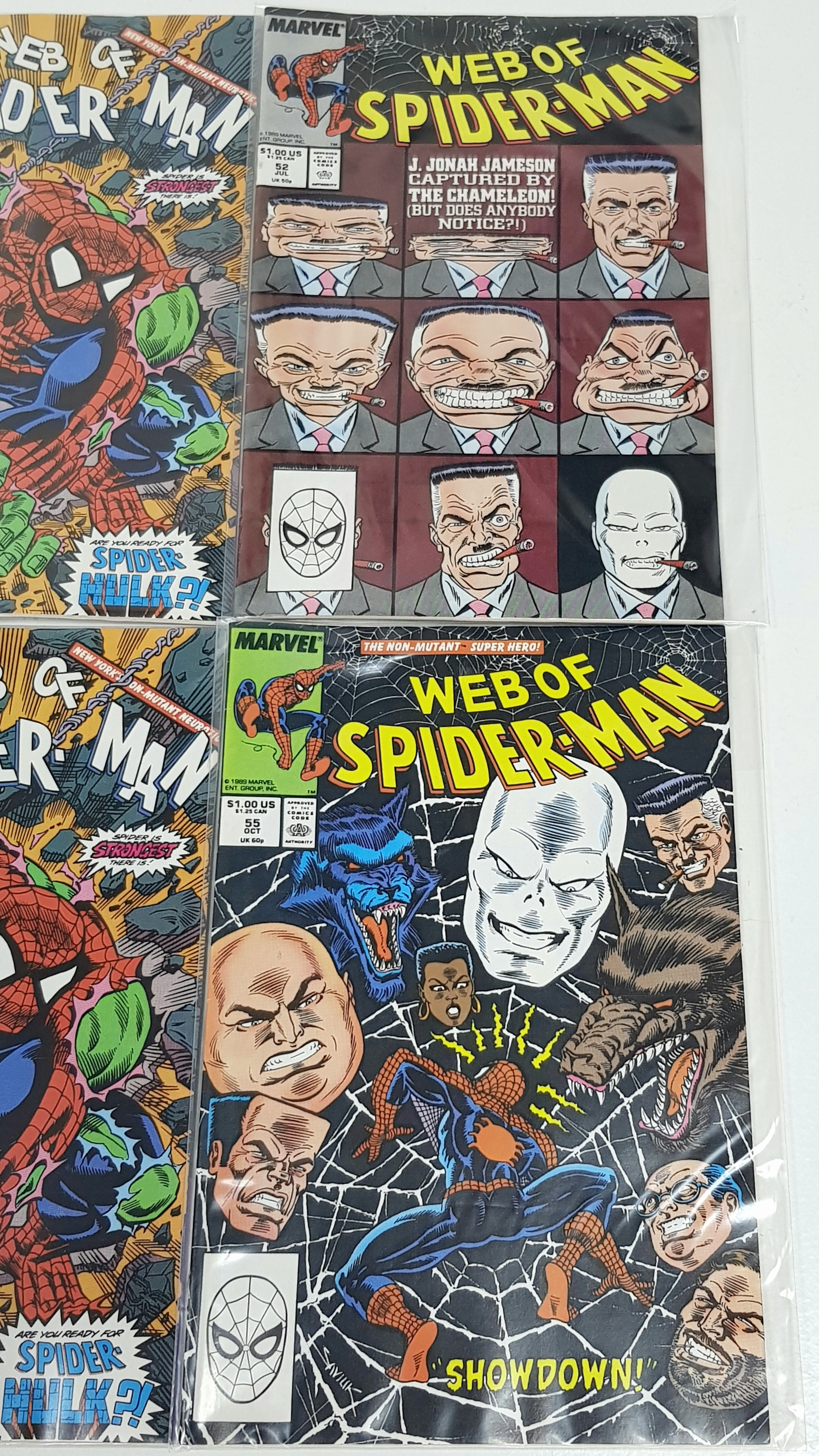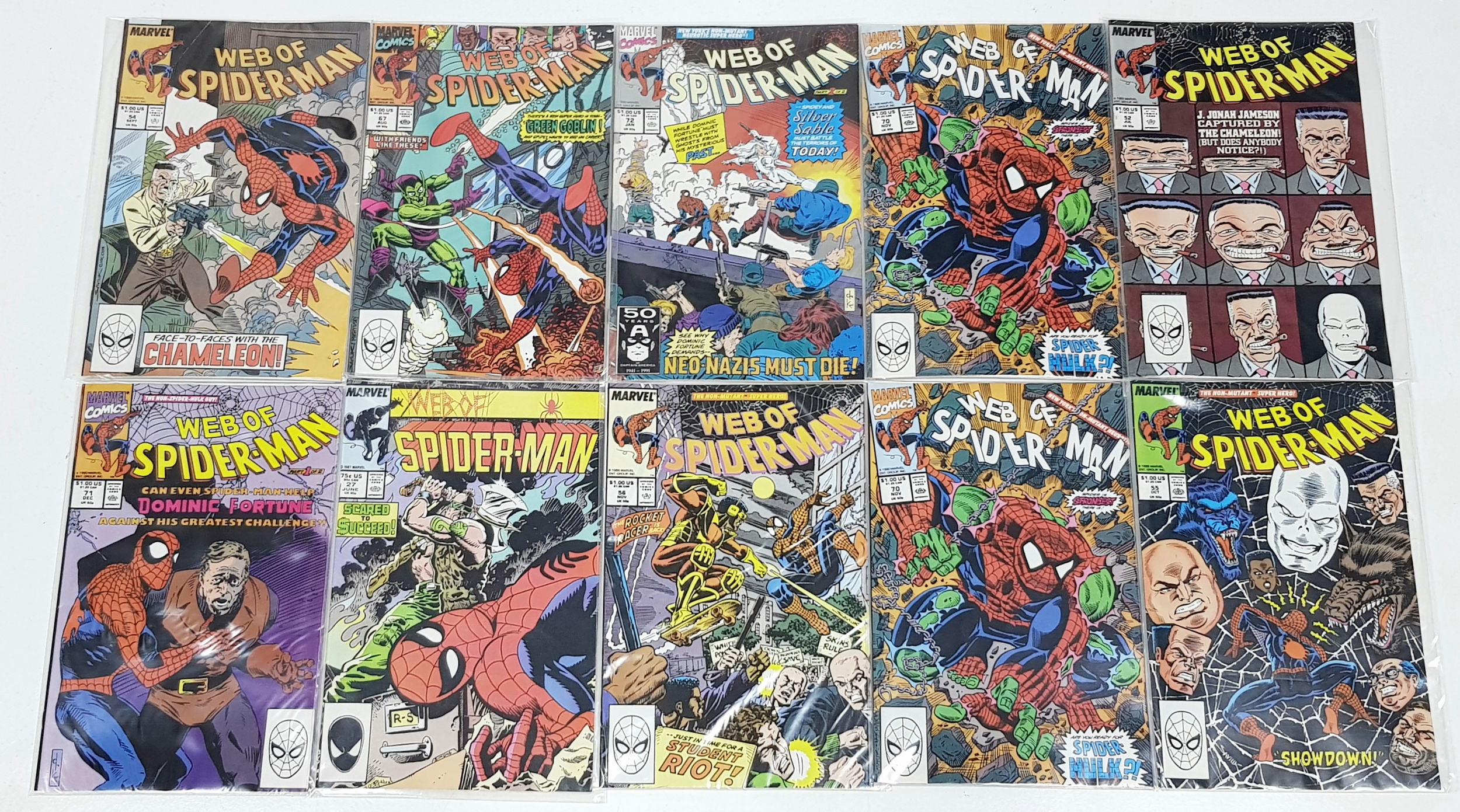 Ten Marvel Spiderman Comics - Most Being in Very Fine to Very Fine Plus Grade. All individually wrapped in plastic. Please refer to photos for finer details.