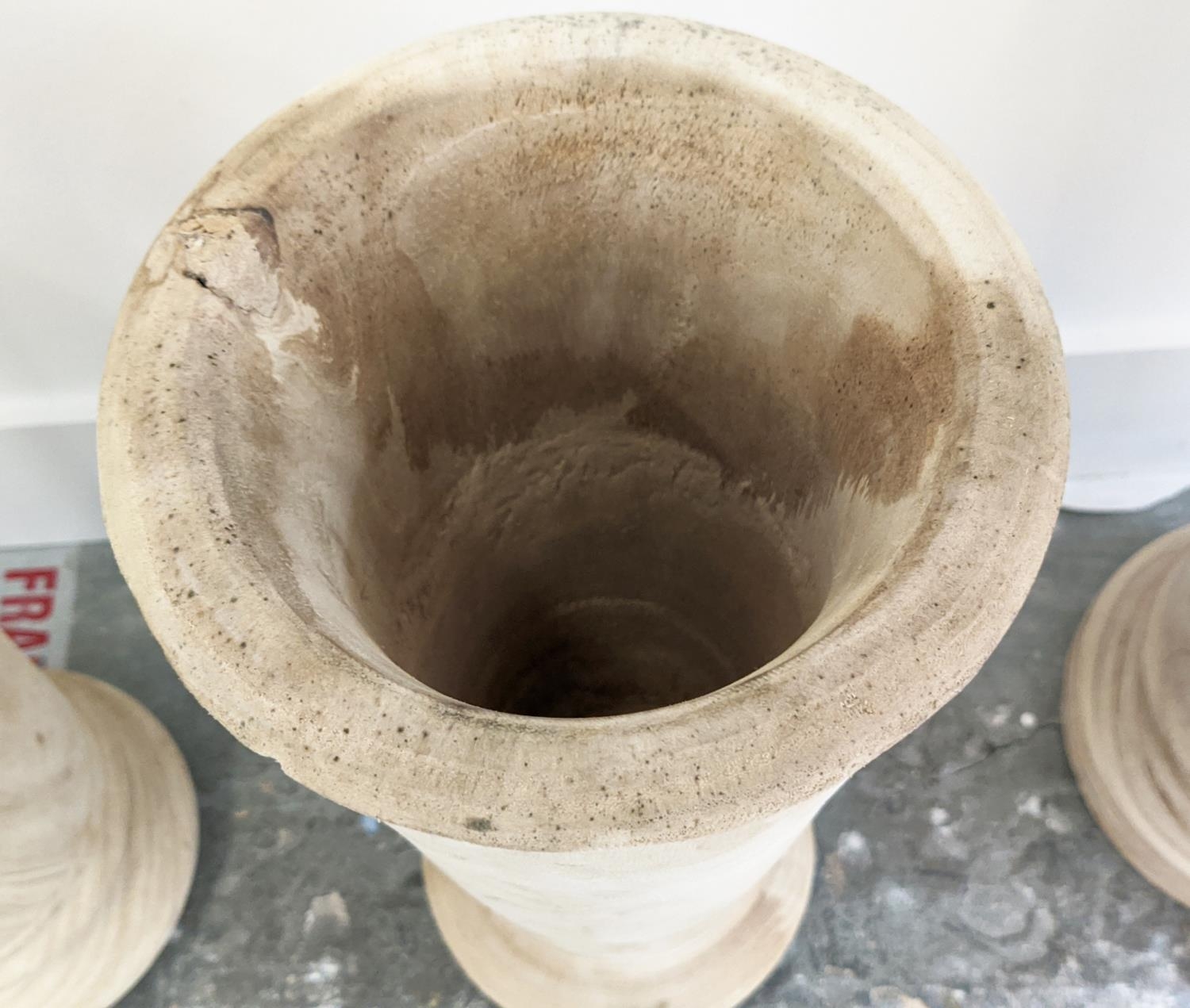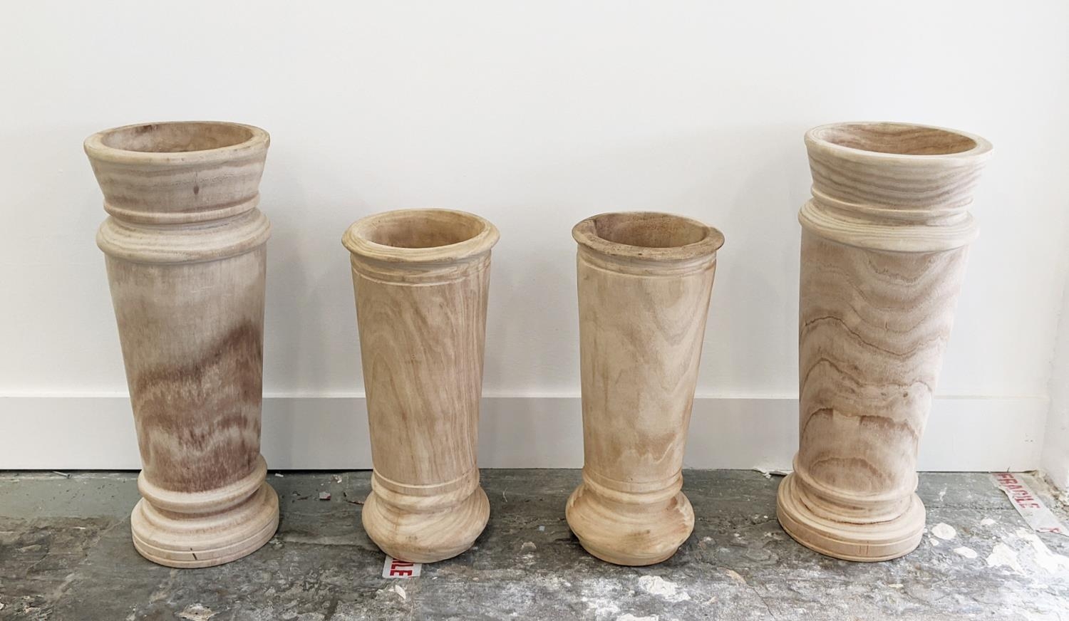 WOODEN VASES, a set of four, larger pair 53cm H x 22.5cm, sm...