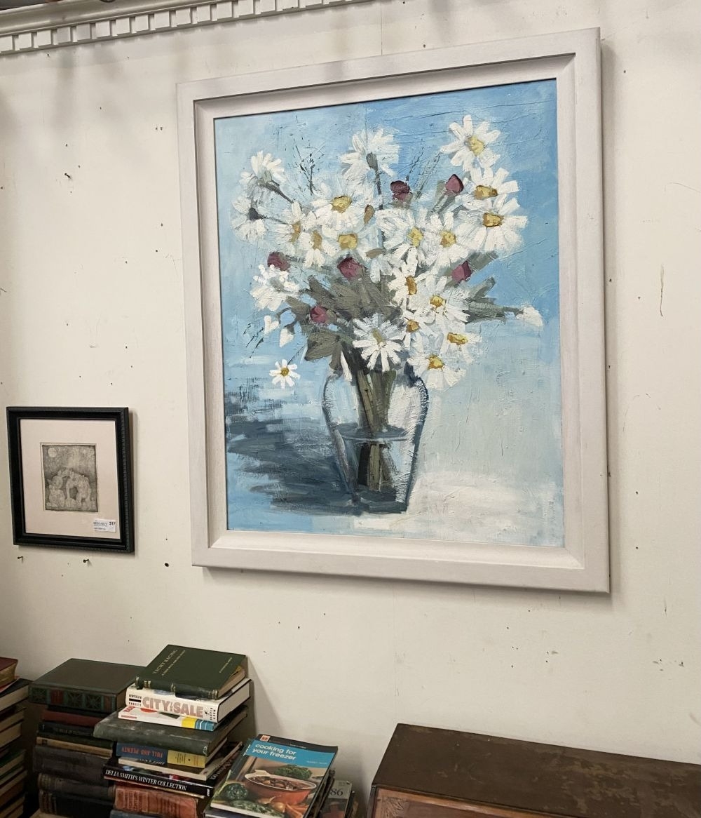 MARTIN STONE (Irish, 20th Century), 'WILD DAISIES', oil on canvas, signed, dated and titled verso. Dimensions: 96cm x 117cm approx. frame