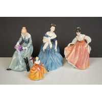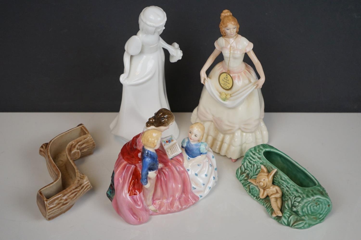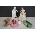 A collection of mixed ceramics to include Royal Doulton figures and Sylvac Pixie vase.
