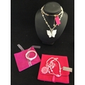 another with butterfly pendant and a rose quartz panelled bracelet (3) -