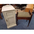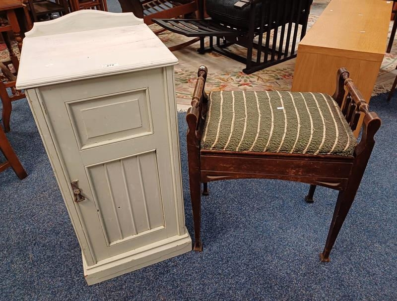 LATE 19TH CENTURY PAINTED SINGLE DOOR BEDSIDE CABINET & MAHGOANY PIANO STOOL