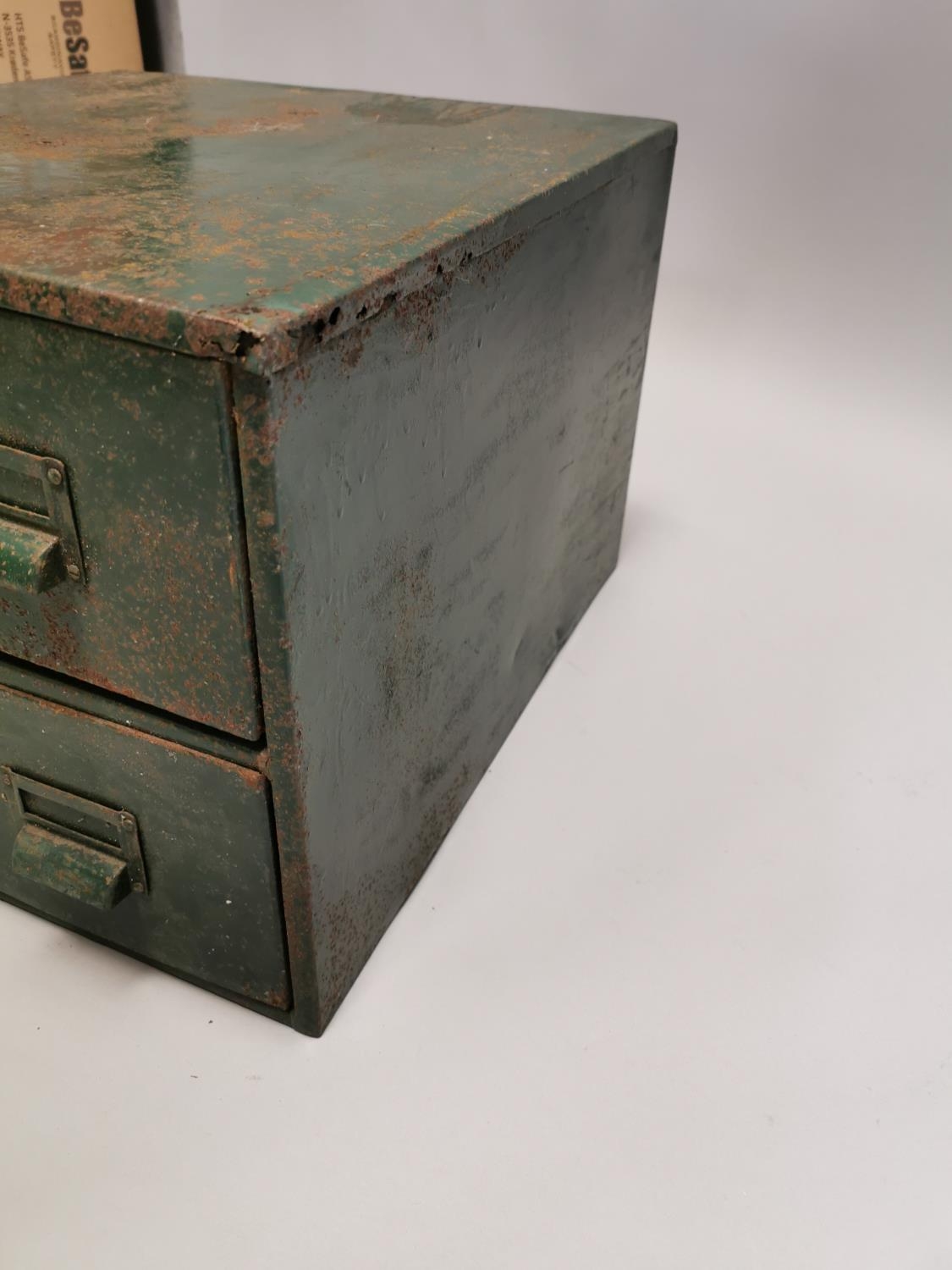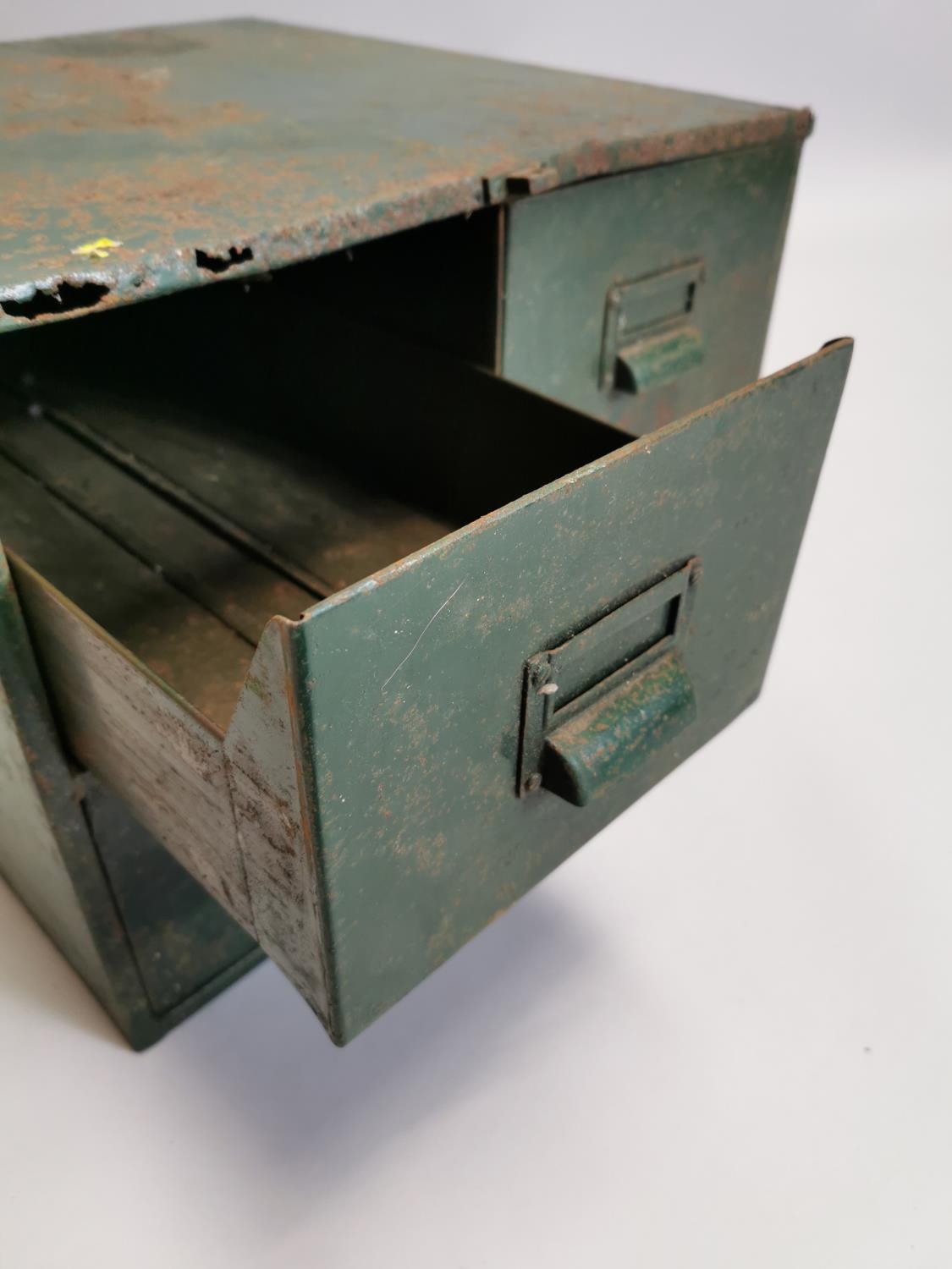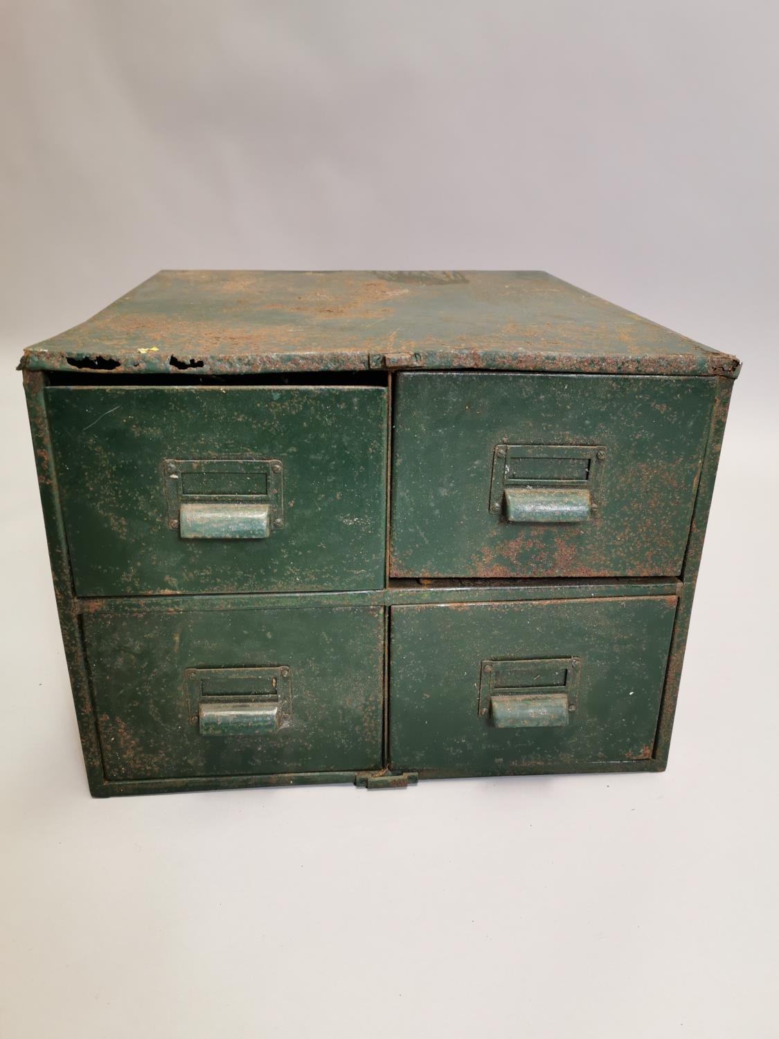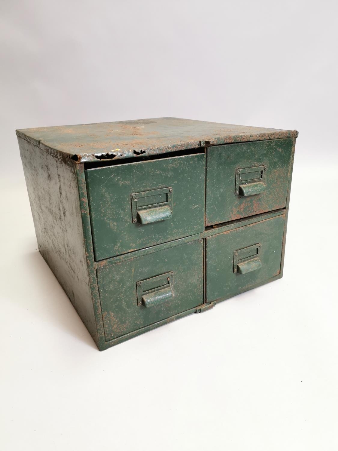 Industrial bank of four metal drawers { 36cm H X 47cm W X 51cm D }.