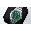 Bezel: Uni-directional bezel with a green ceramic insert.