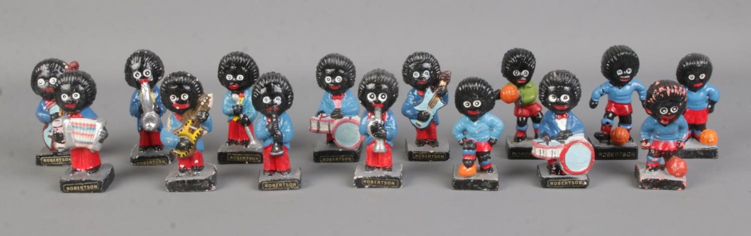 A collection of Robertson and similar Golly figures, containing musician and sporting examples.