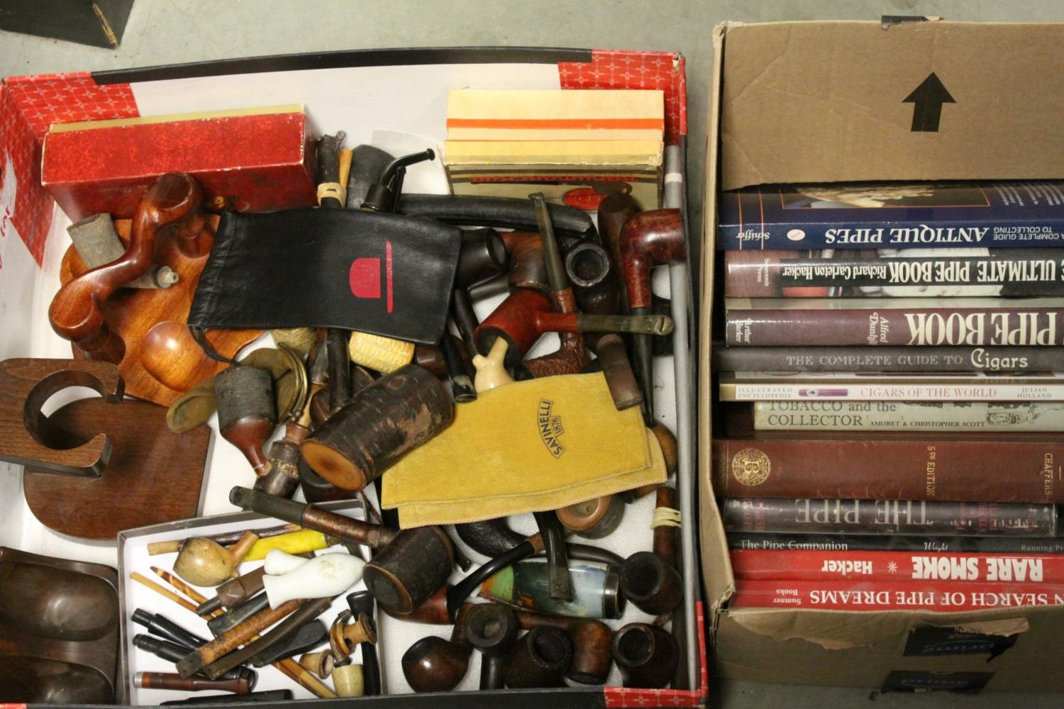 Pipes - Large Collection of mainly Wooden Smoking Pipes and Stands together with a Box of Books mainly relating to collecting Pipes