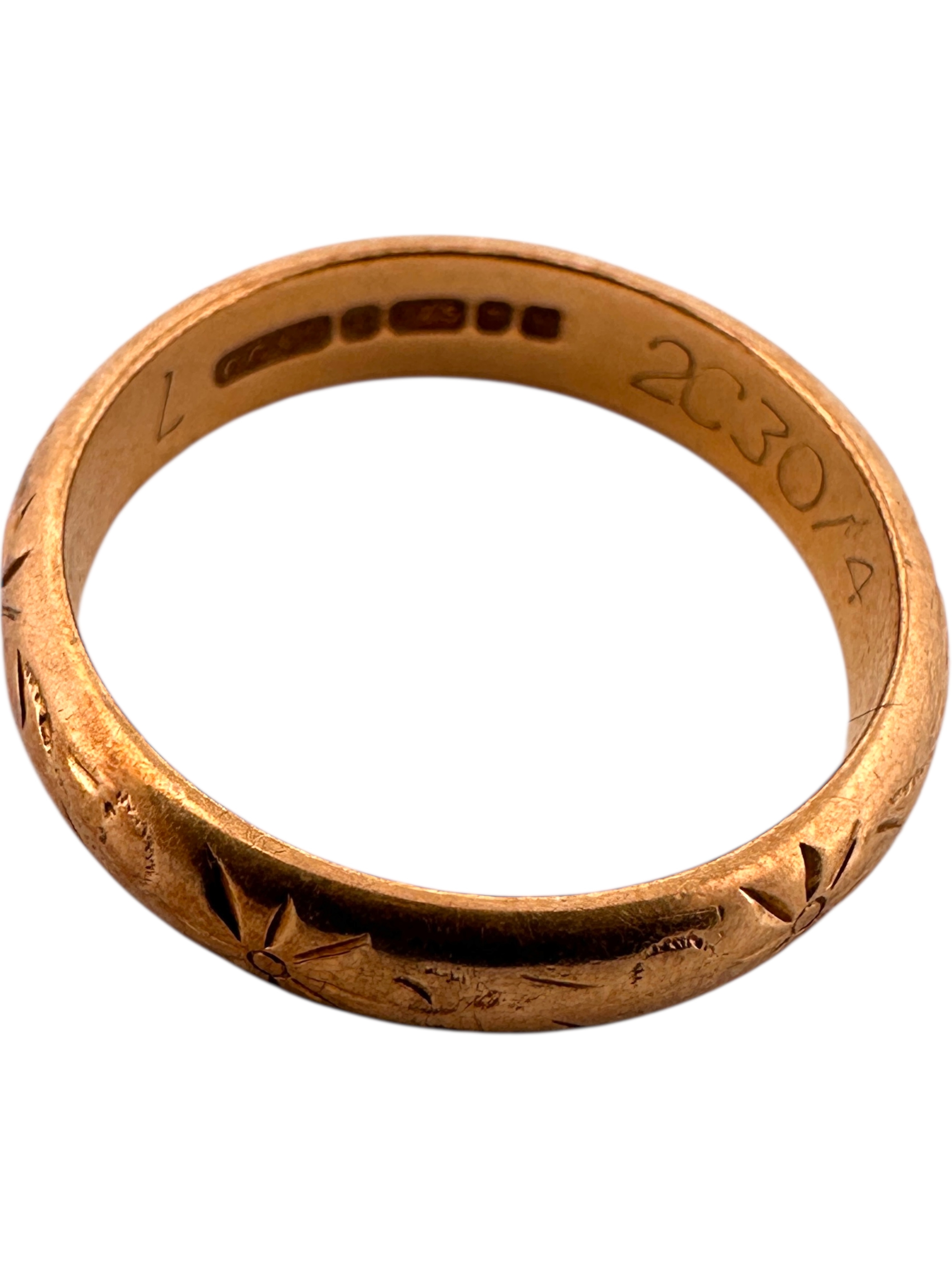 Nine Carat Gold Engraved Band Ring. Full London Hallmarks. S...