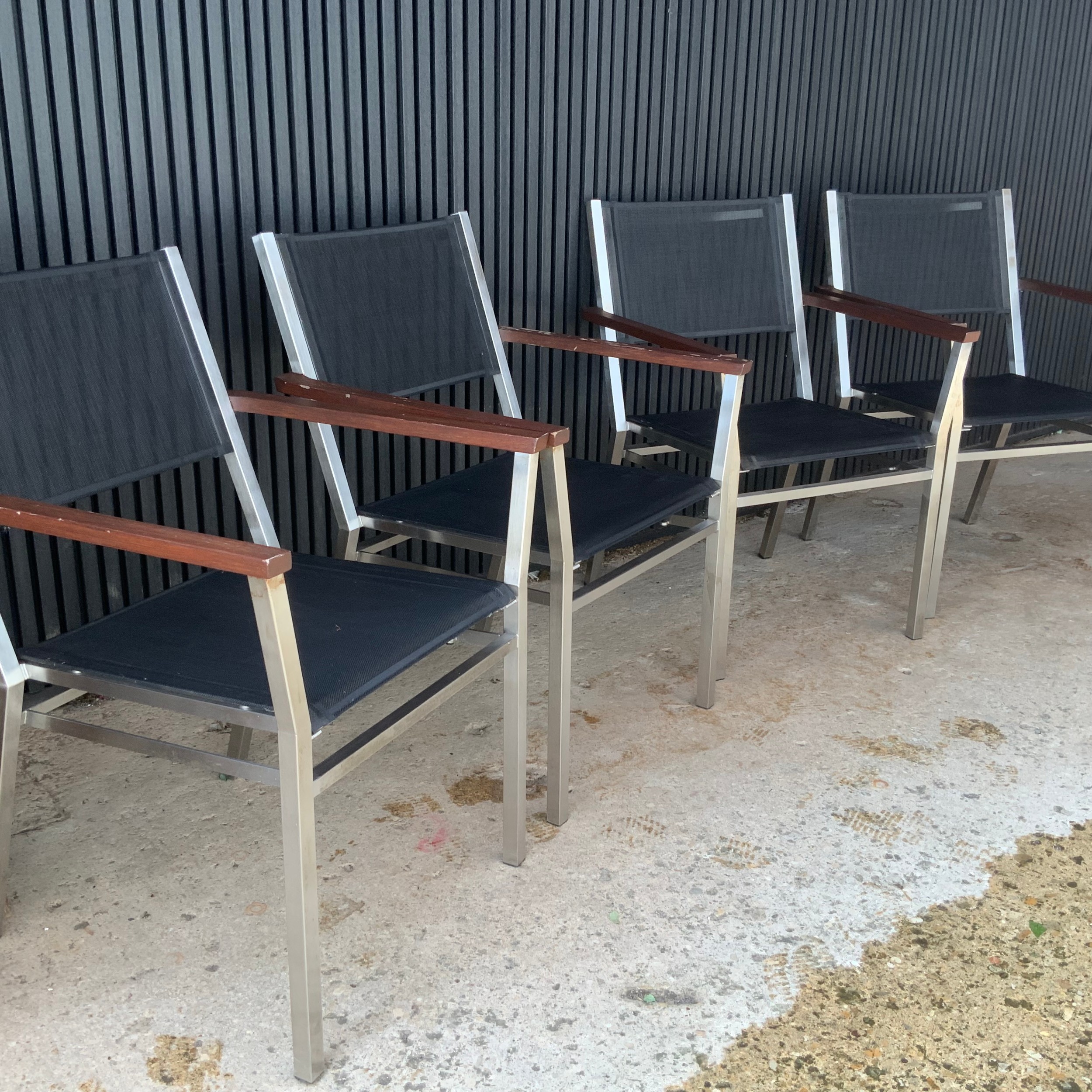 Four Barlow Tyrie garden chairs, each with original label to the seat.
