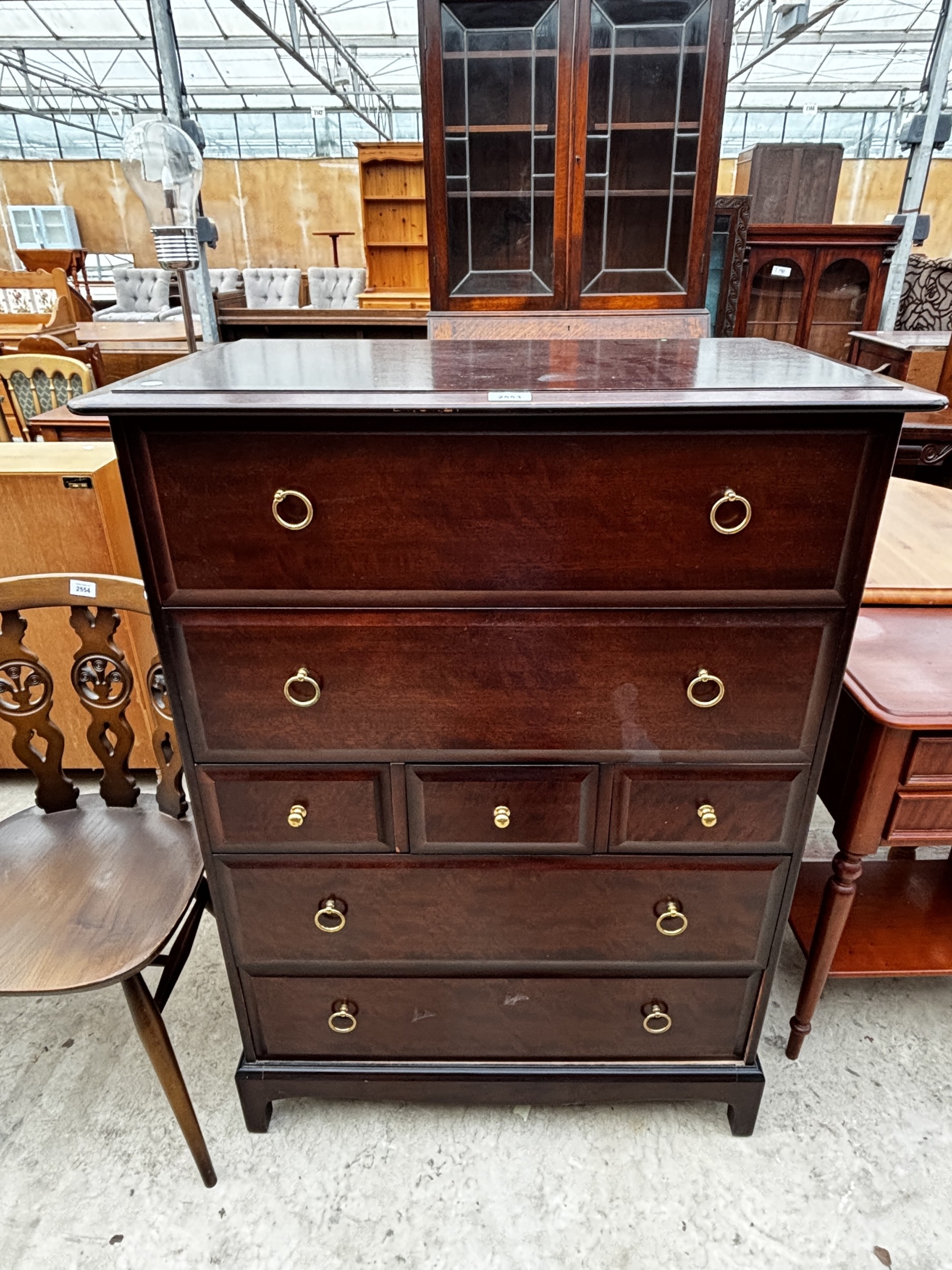A STAG MINSTREL CHEST OF THREE SHORT AND FOUR LONG DRAWERS, 32" WIDE