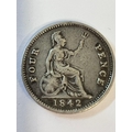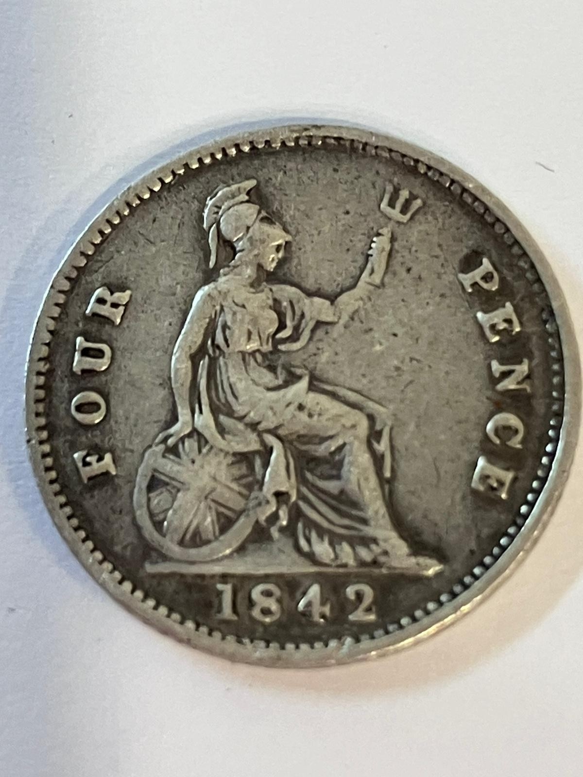 1842 SILVER GROAT (FOUR PENCE COIN). Early Queen Victoria Young Head in very fine condition.