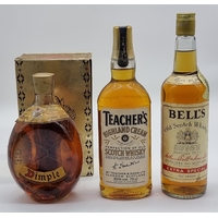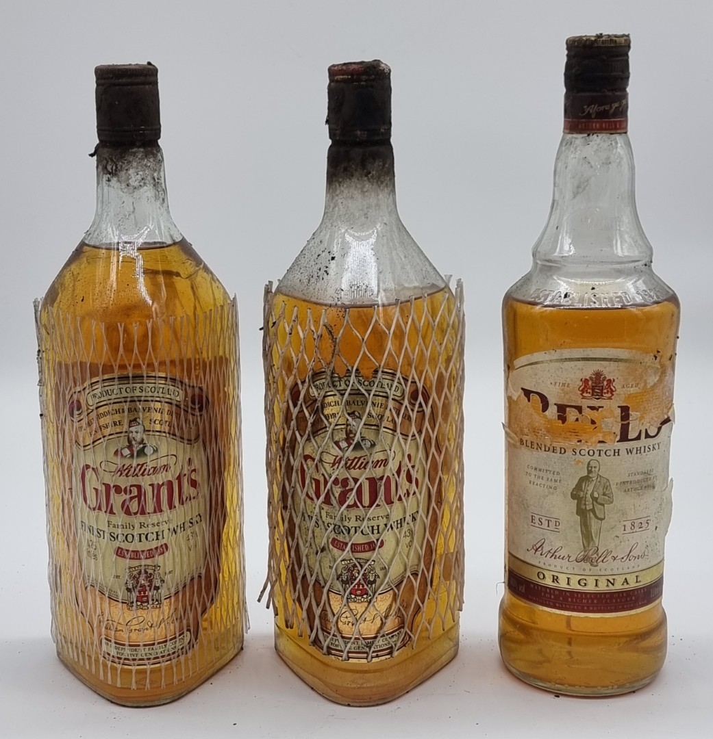Two 1.125 litre bottles of Grant's Blended Whisky; together with a 1 litre bottle of Bell's Blended Whisky. (3)