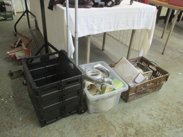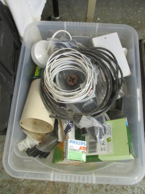 MOBILE TOOLBOX AND 2 BOXES OF MISCELLANEOUS ELECTRICALS