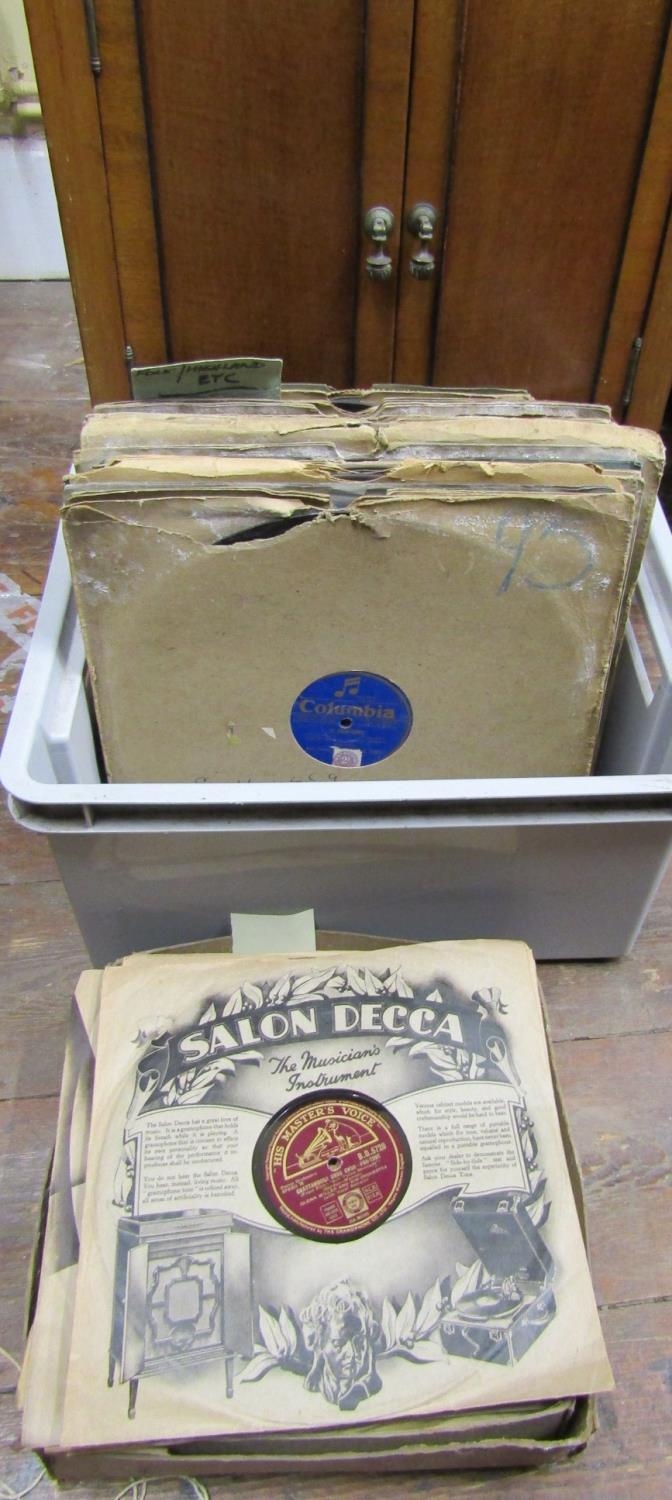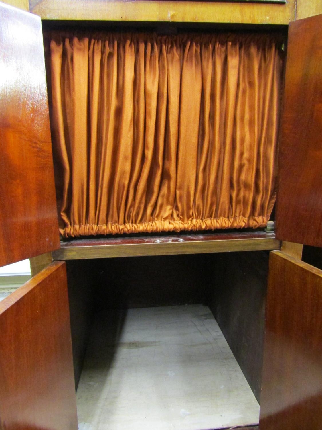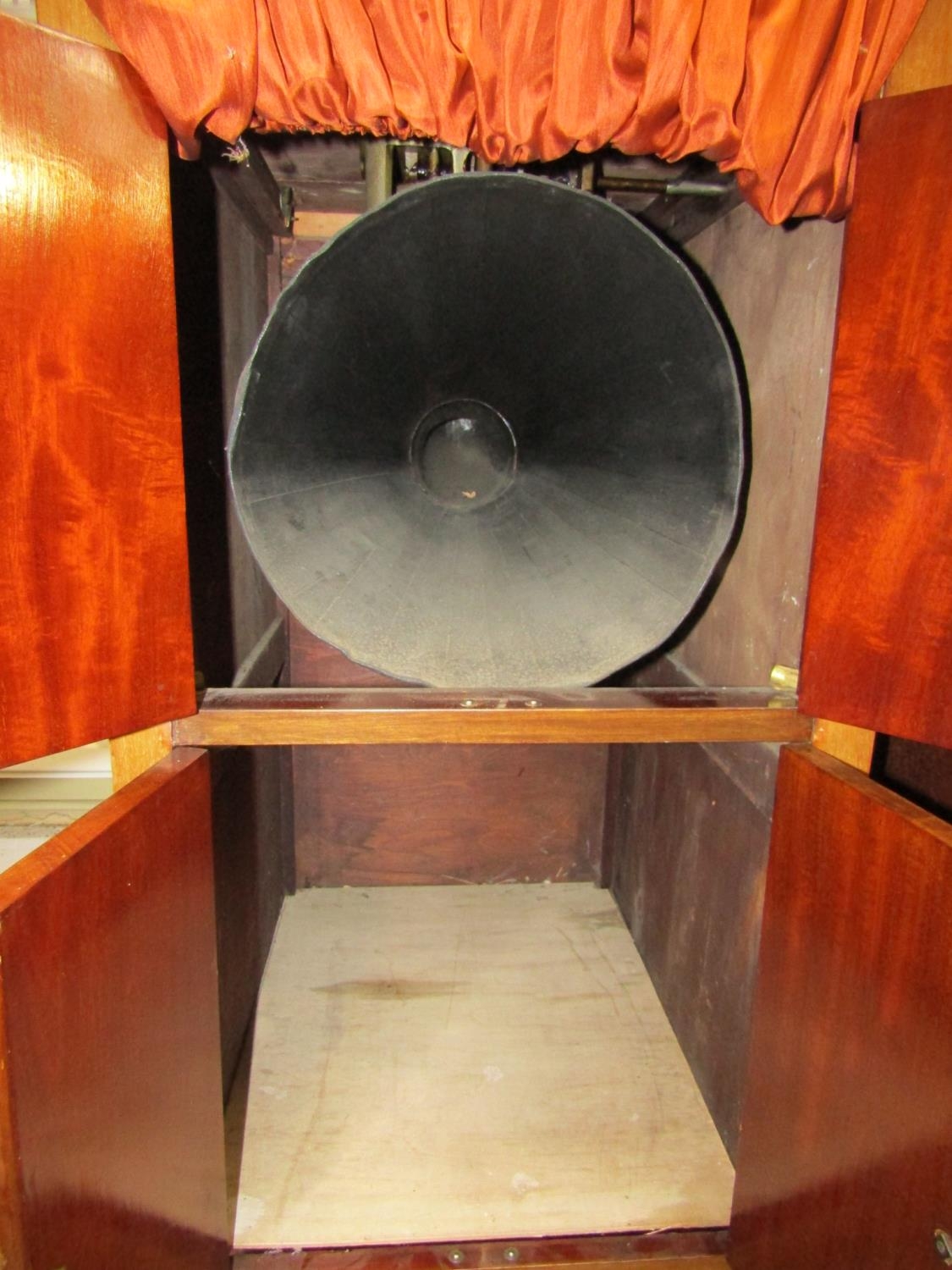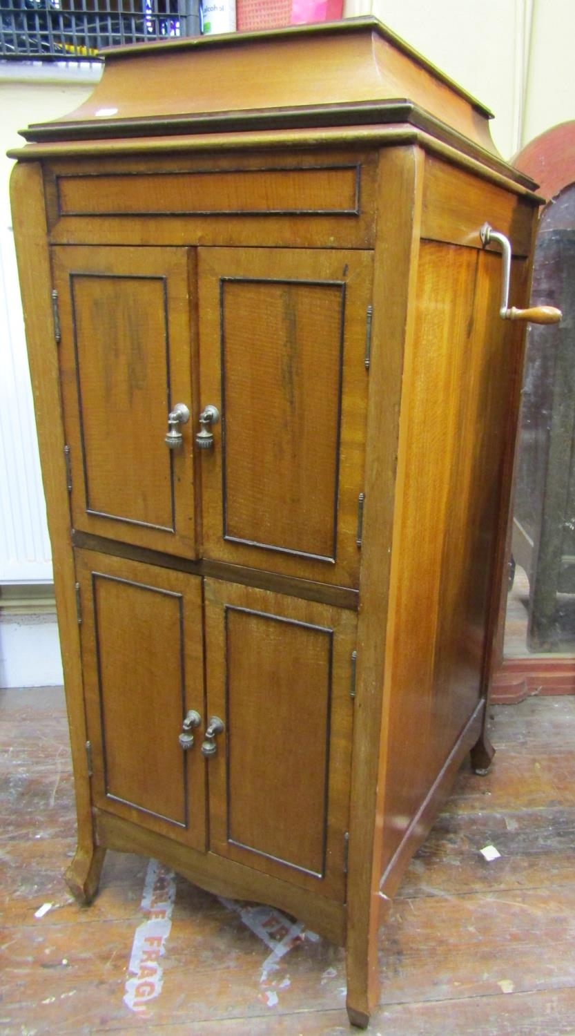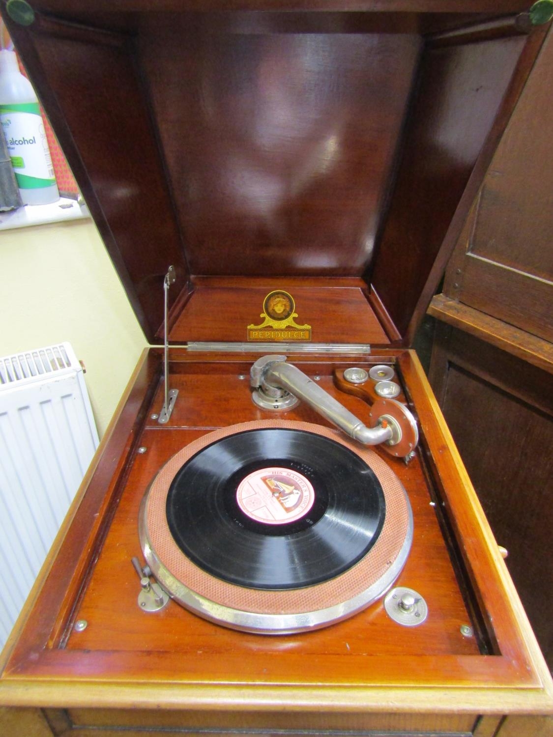 A Peridulce Beltona floorstanding gramophone with chrome fittings, the front elevation enclosed by two pairs of panelled doors, together with selection of 78rpm records - Glen Miller and similar