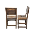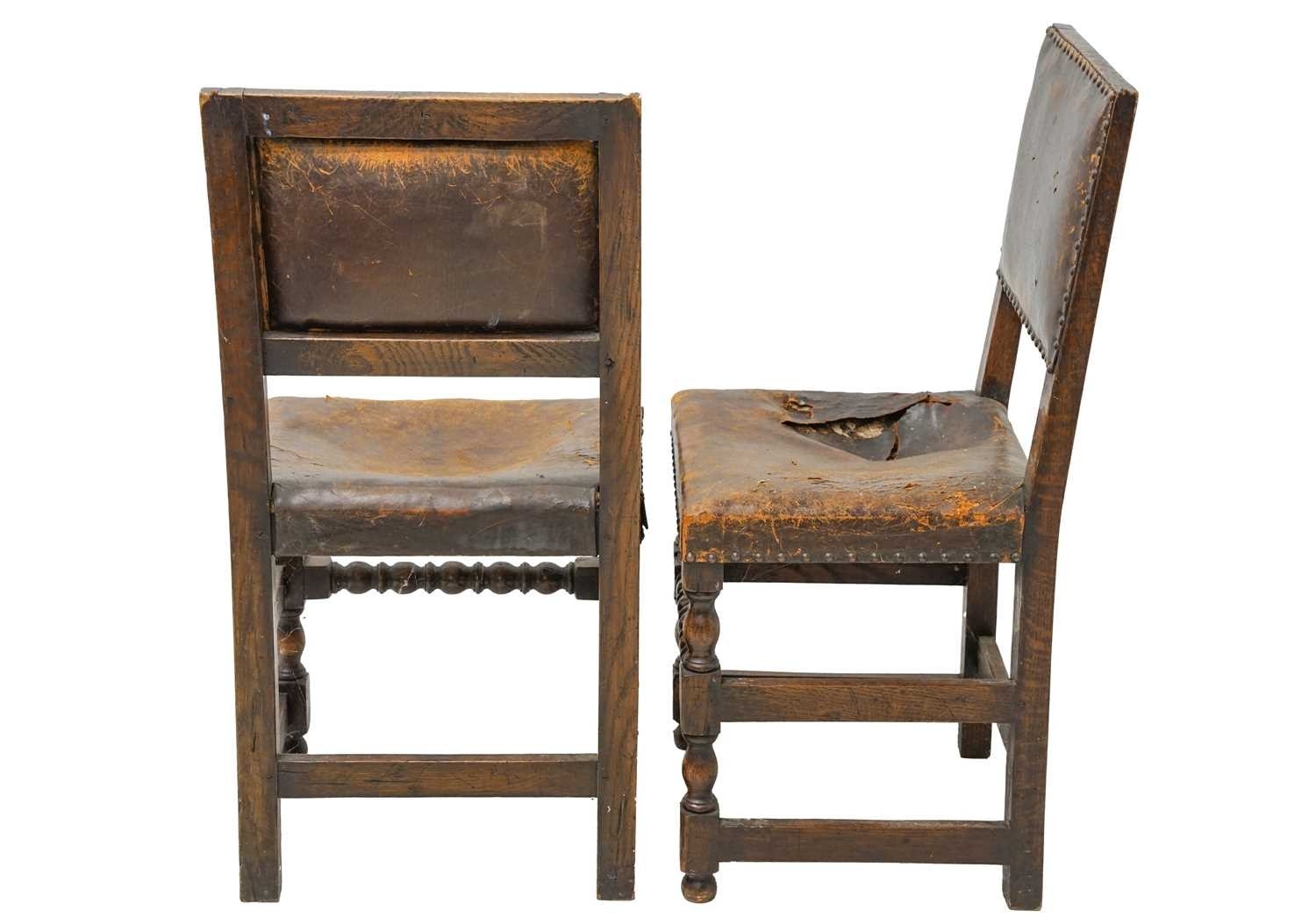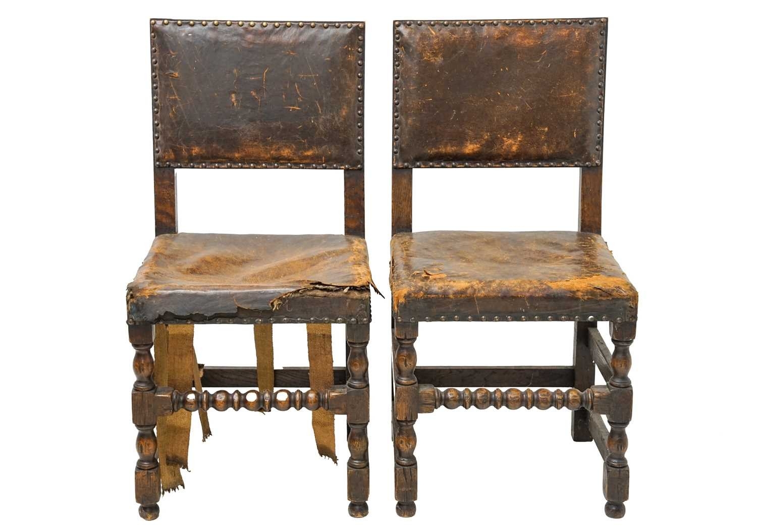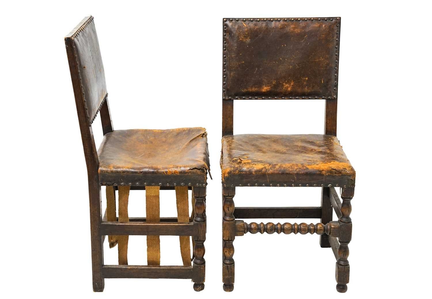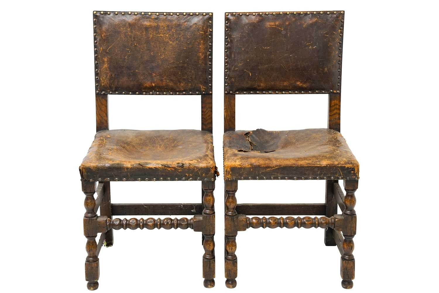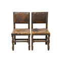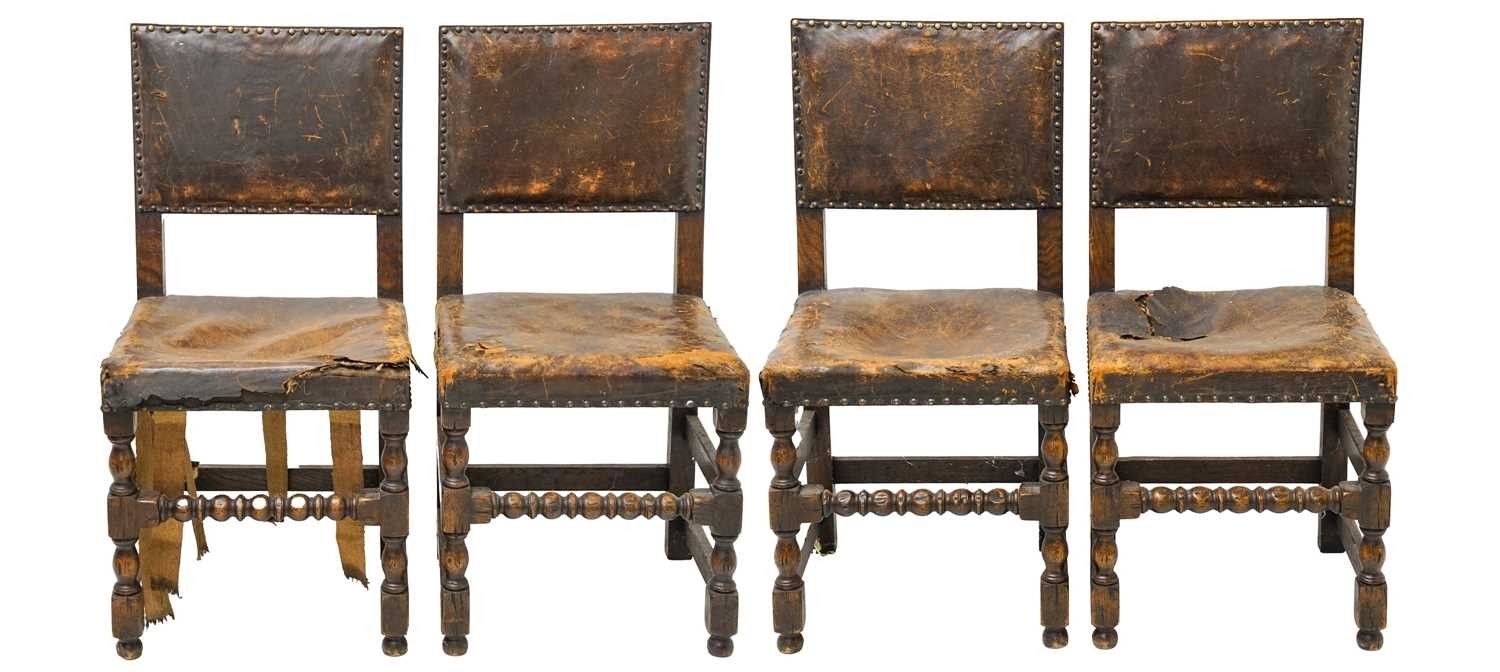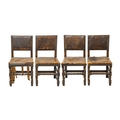 A set of four Cromwellian style oak and leather upholstered dining chairs. .