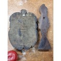 Two vintage wooden hand carved items. Both depicting male faces including an African warrior example. The one on the left is a signed Maori piece.