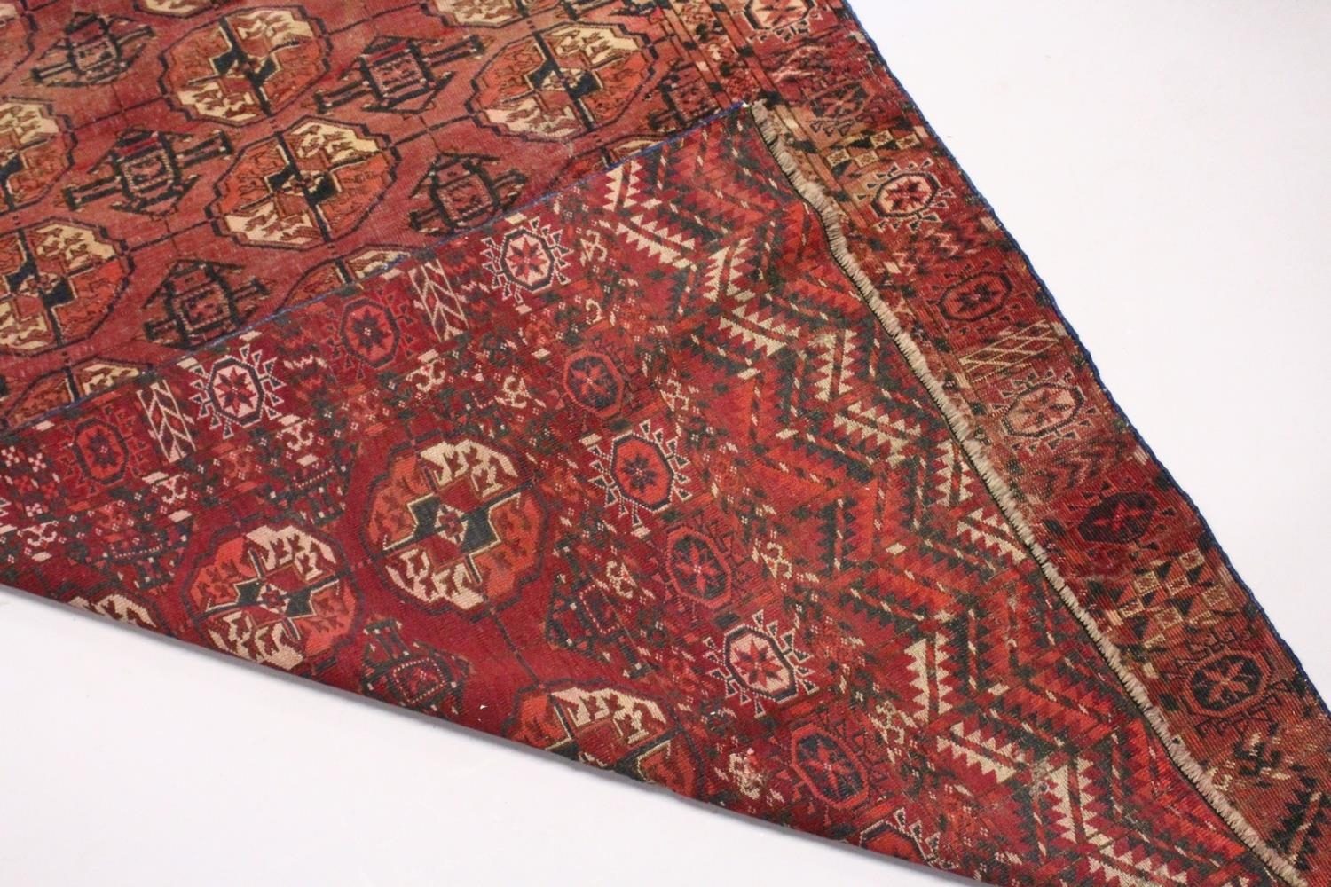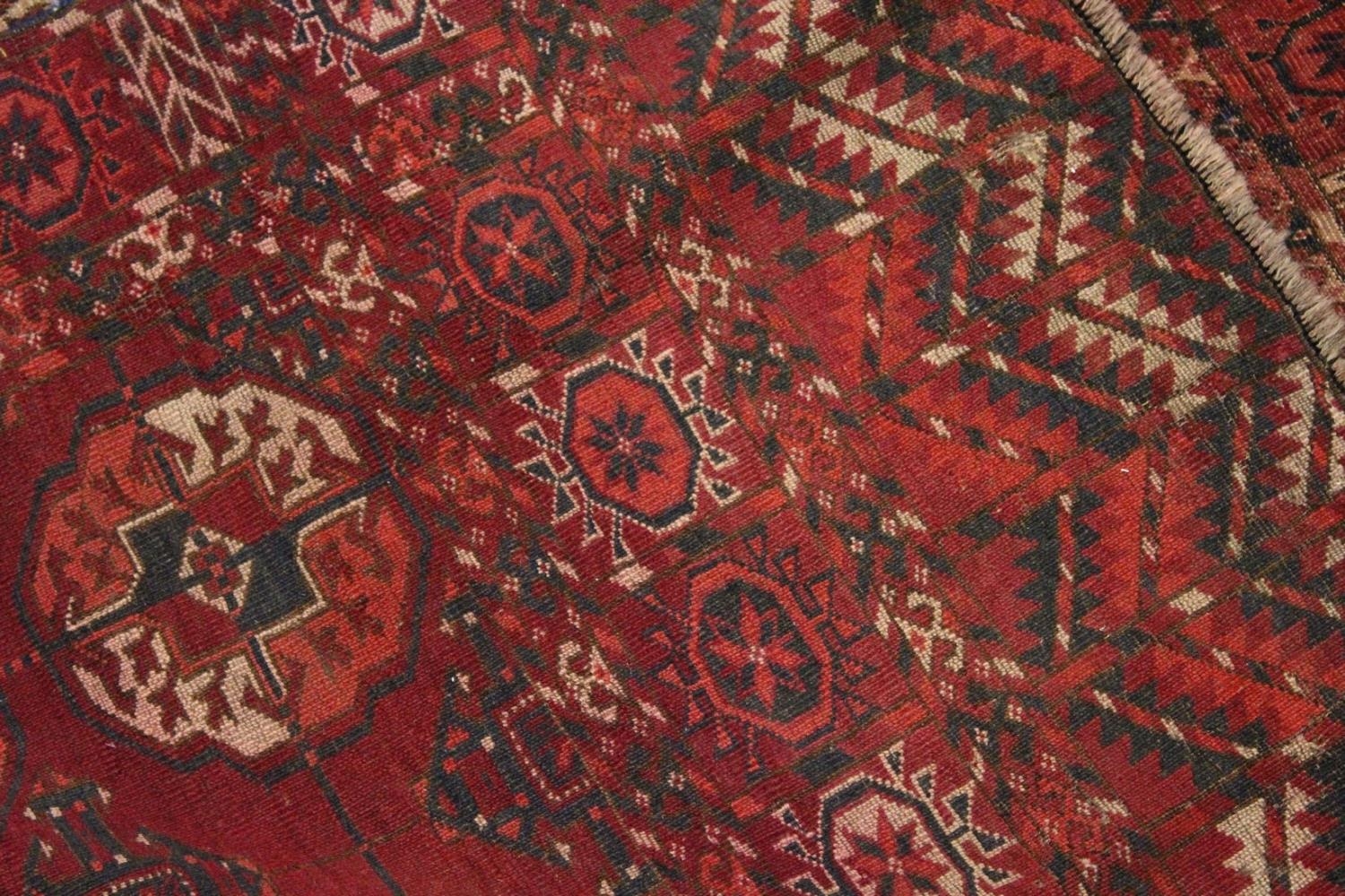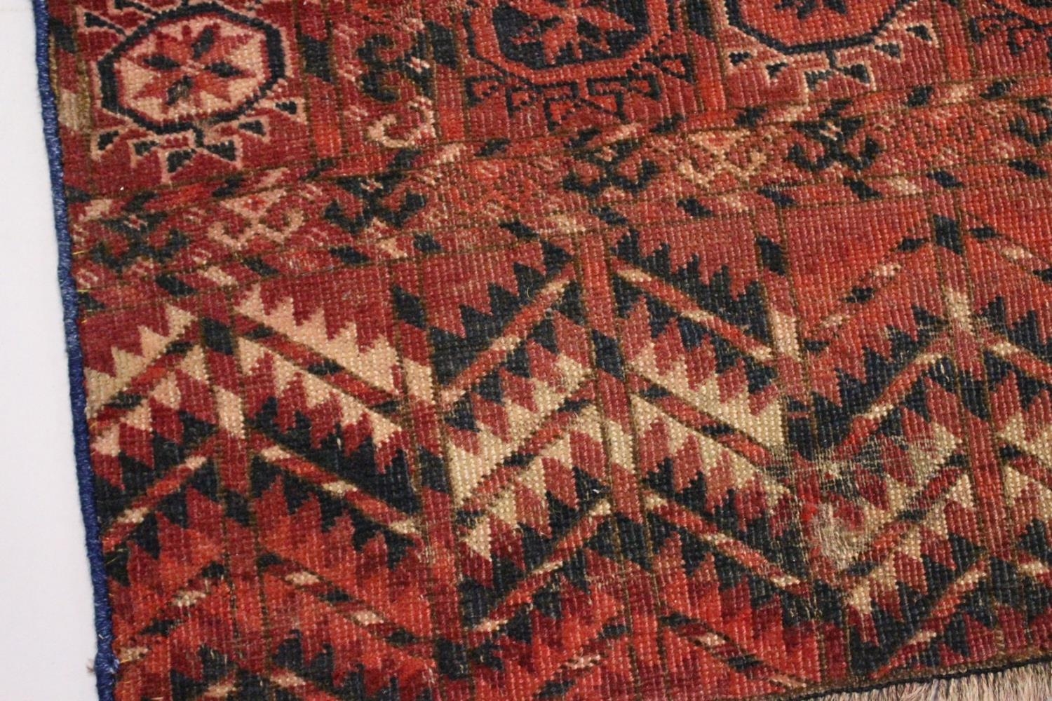 A GOOD EARLY 20TH CENTURY TURKMAN TEKKE RUG, claret ground with three rows of seven gulls.