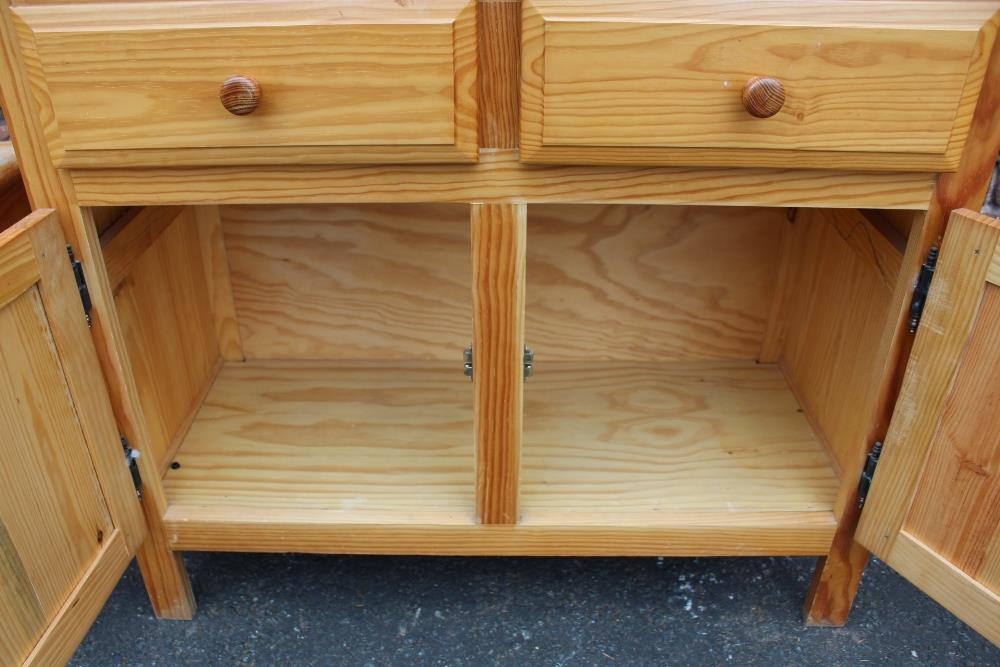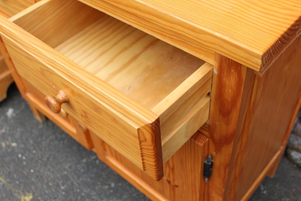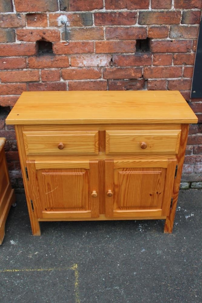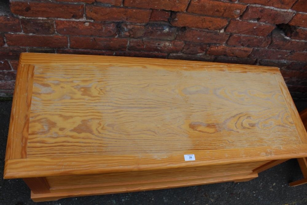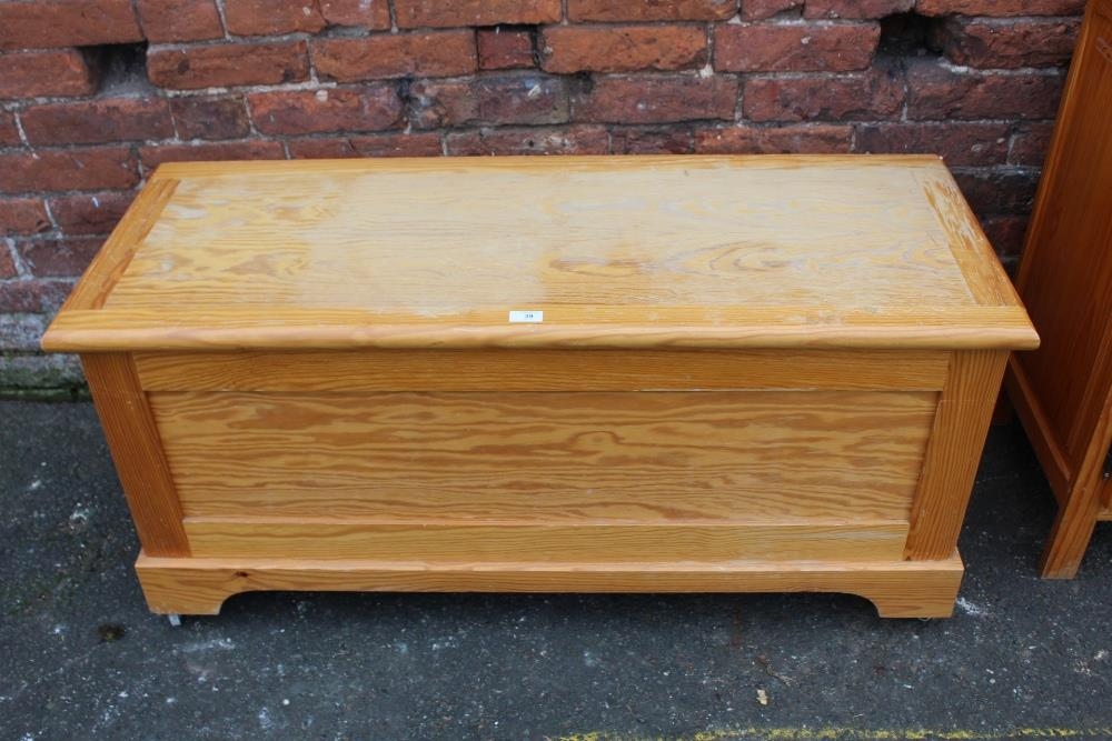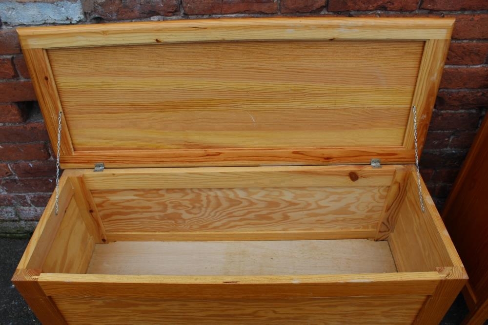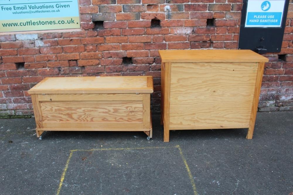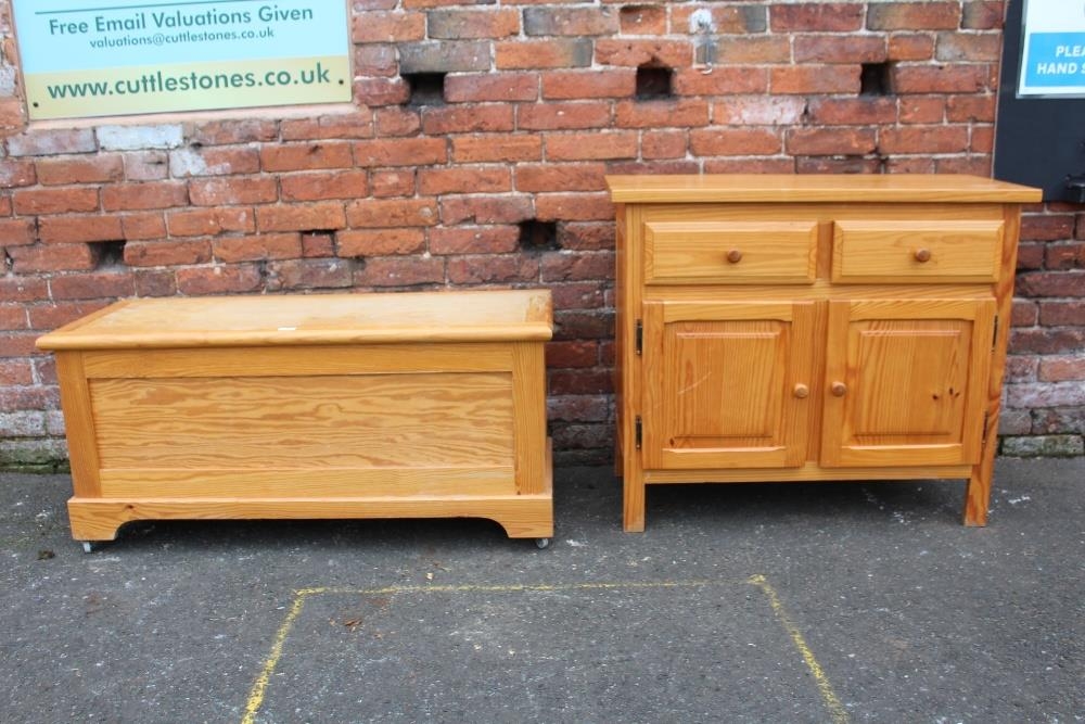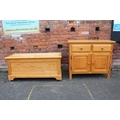 A MODERN PINE SMALL SIDEBOARD, together with a pine blanket box (2)