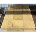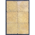 Thirty-five buff coloured tiles with inset grooved design of flowers within circles, 13cm by 13cm