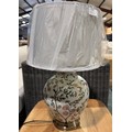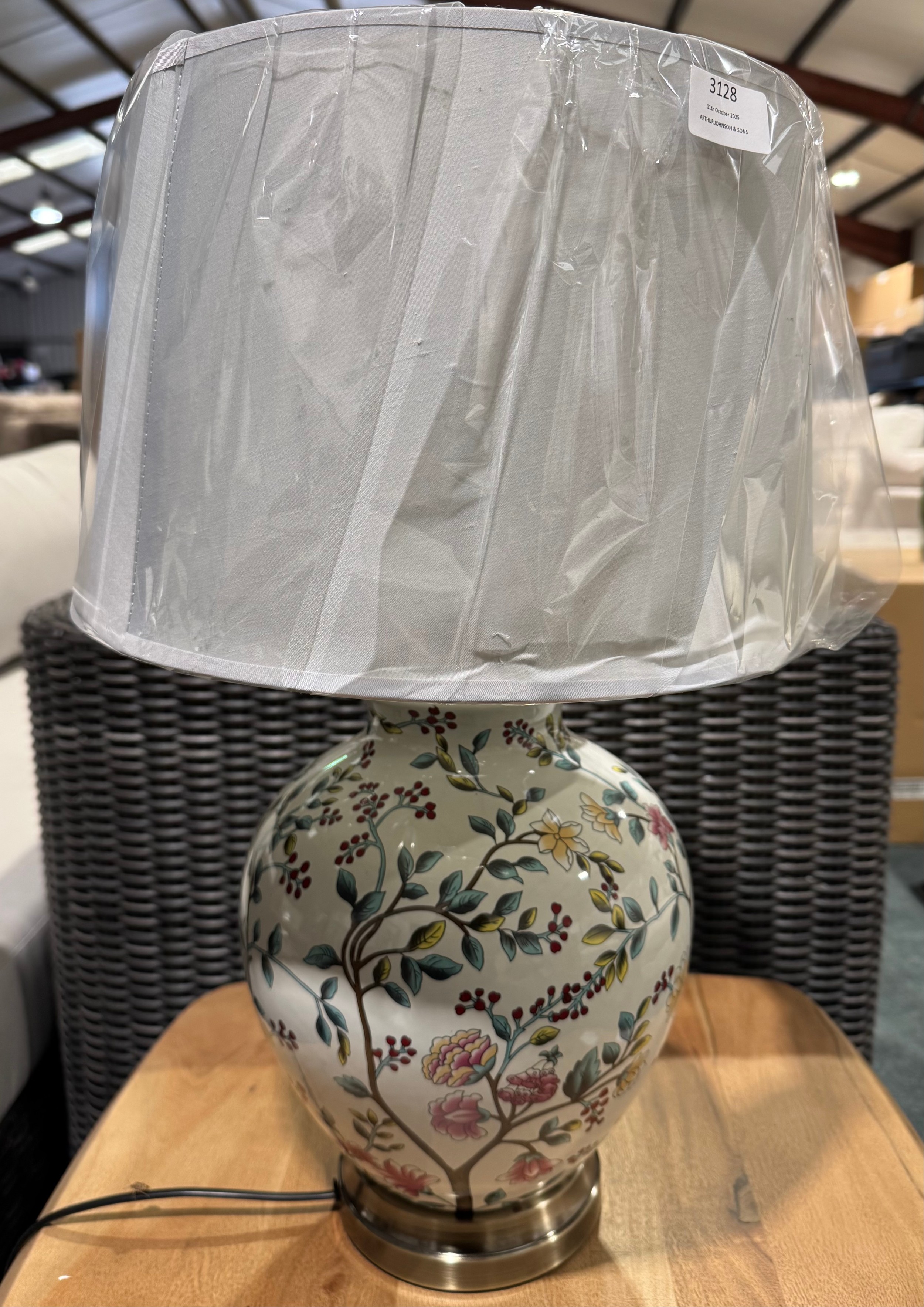 A floral patterned table lamp