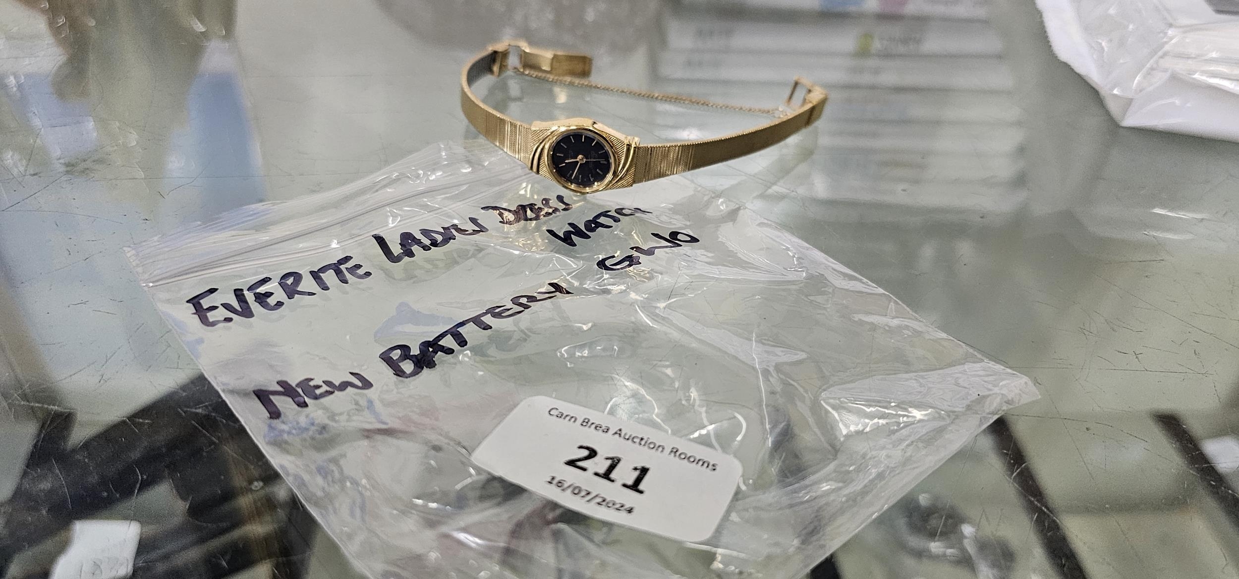 ladies everite goldtone grey feaced quartz dress watch, new battery Gwo
