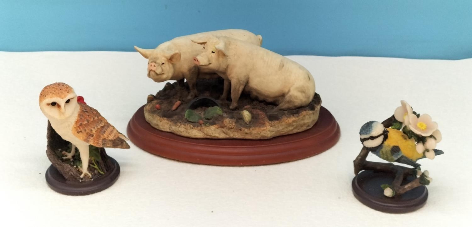 Border Fine Arts James Herriot Collection 'Mud Glorious Mud' Figure on Plinth (12cm High x 20cm) plus 2 x Country Bird Collection Figures, a Barn Owl and a Blue Tit.