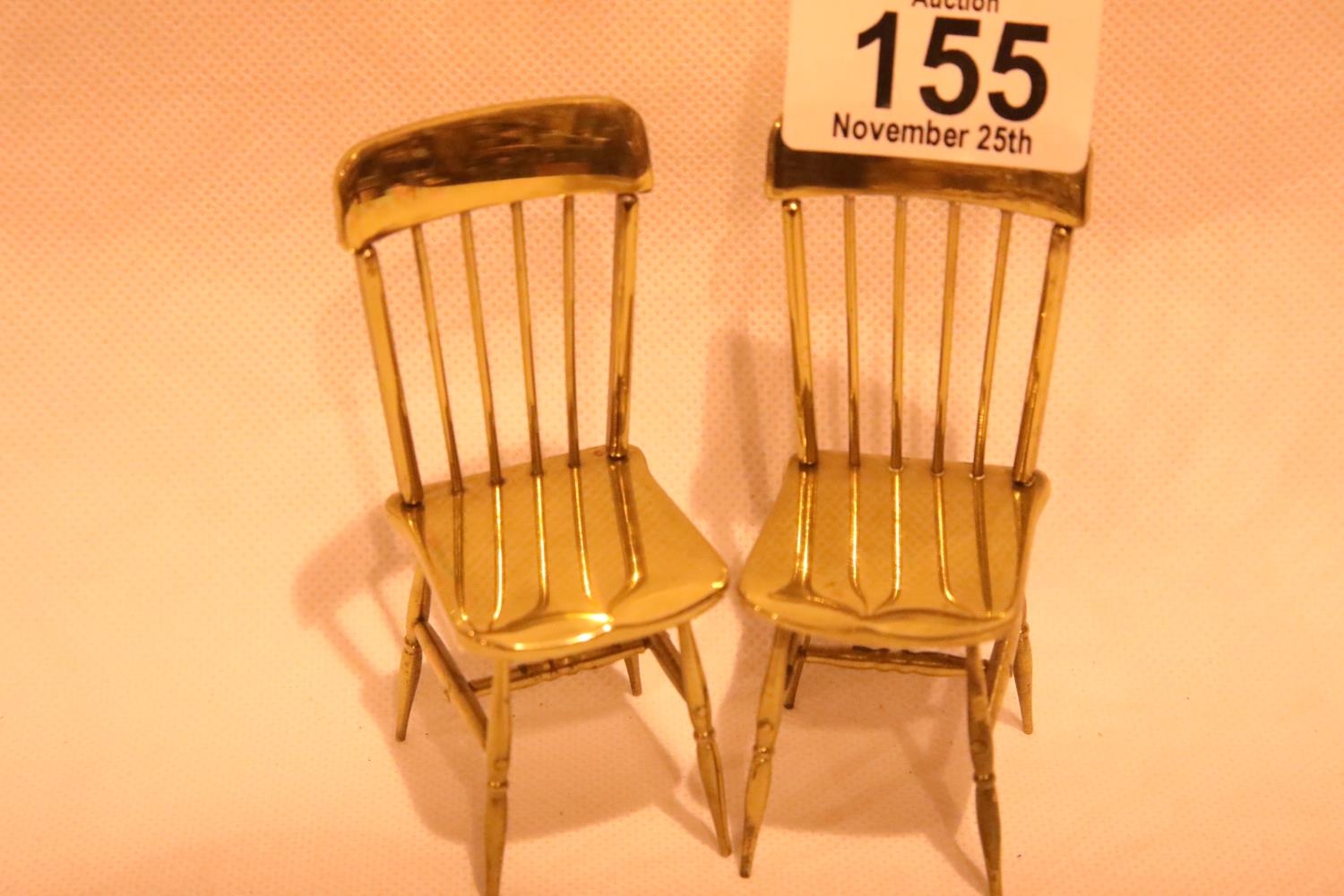 Pair of miniature brass armchairs. P&P Group 1 (£14+VAT for the first lot and £1+VAT for subsequent lots)
