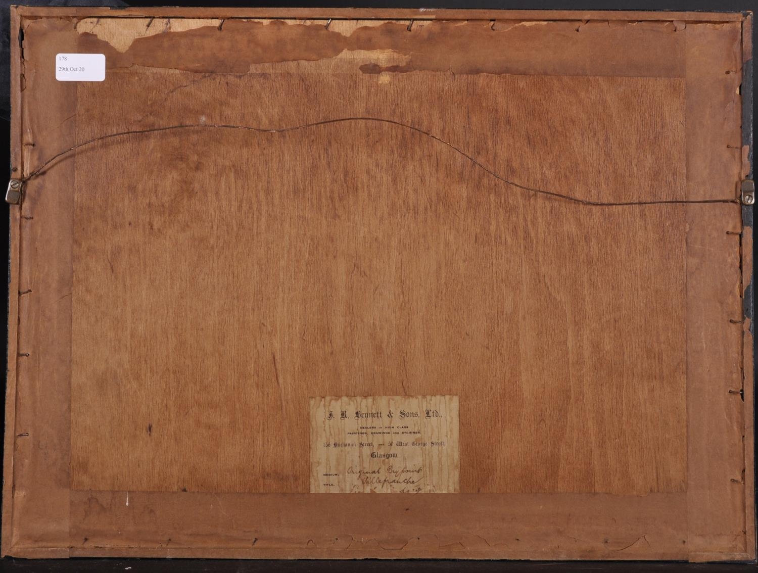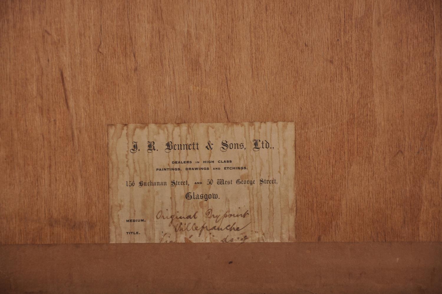 Lionel Arthur Lindsay (1874-1961) British. “Villefranche”, Drypoint Etching, Signed in Pencil, 6.75” x 9.75” (17.2 x 24.7cm). Provenance; J. R. Bennett & Sons Ltd, Glasgow.