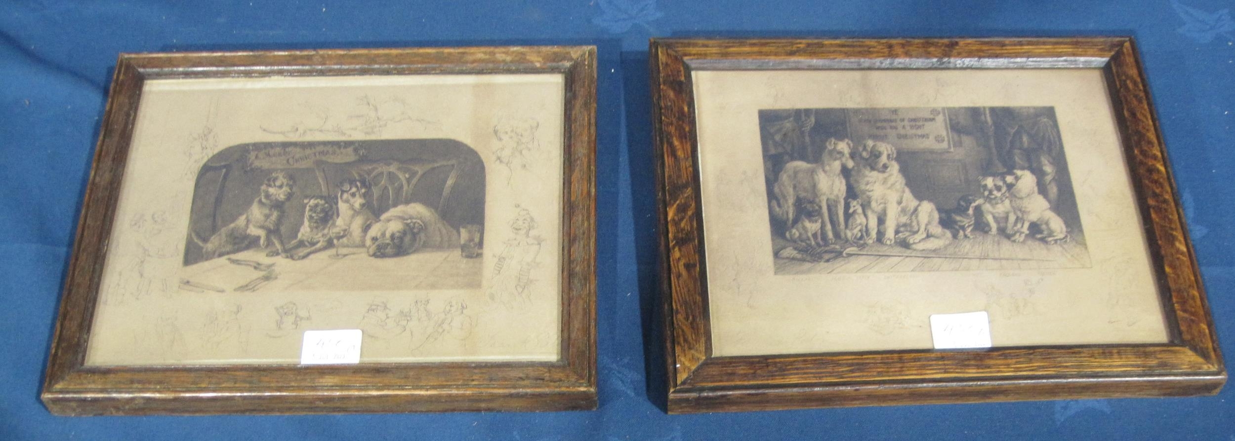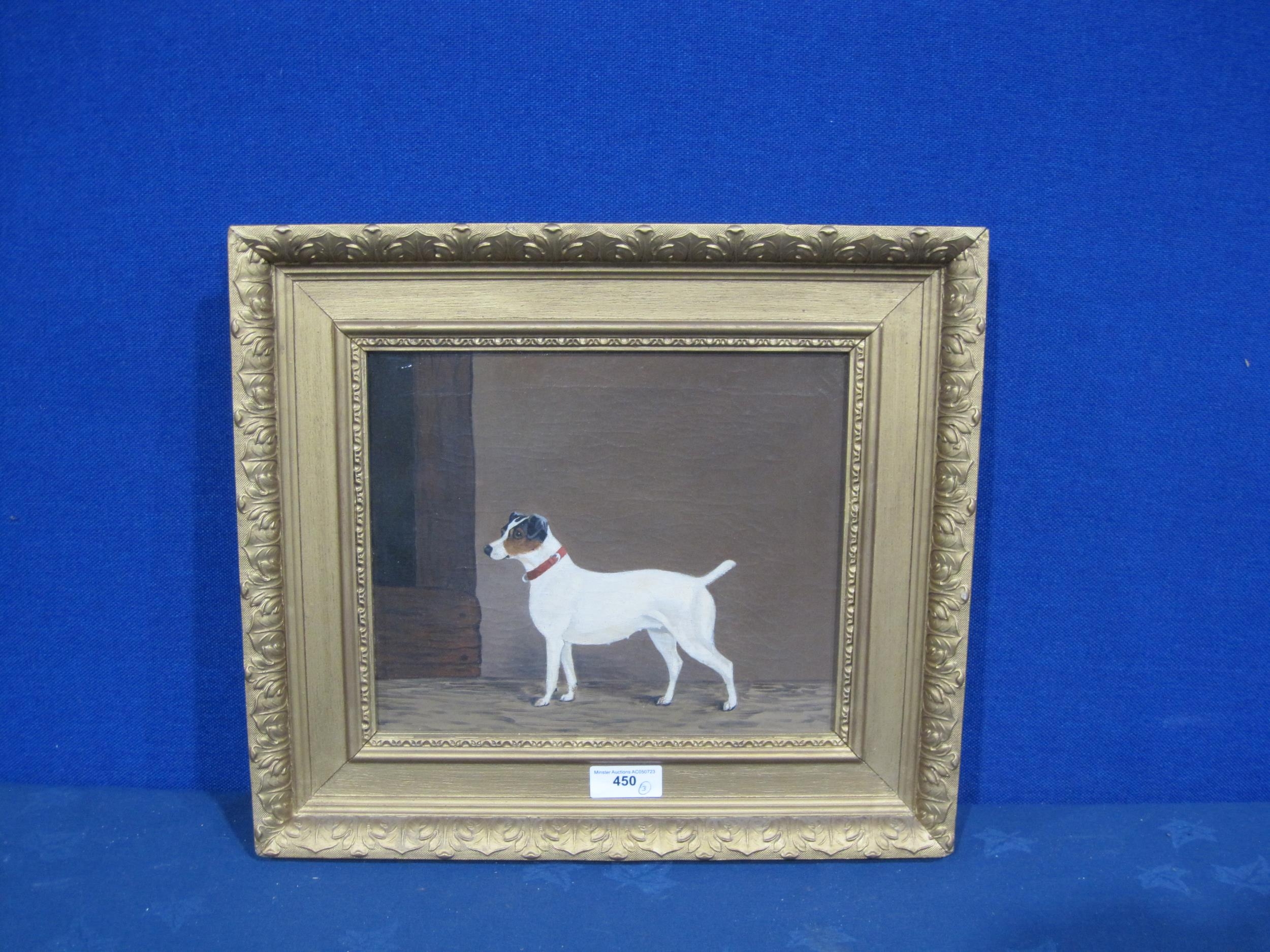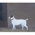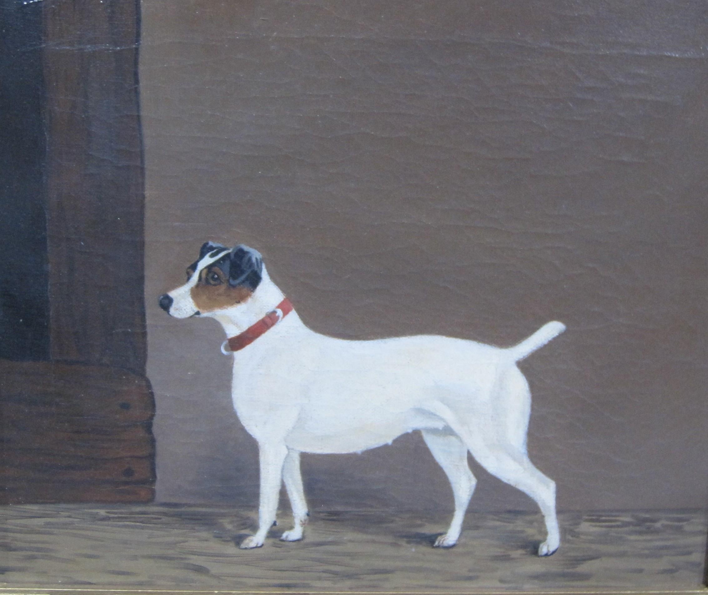 ENGLISH SCHOOL, CIRCA 1890. A Jack Russell Terrier by a doorway, oil on canvas, 10 x 12in; and two framed etchings by Frank Paton of canine subjects; three (3)